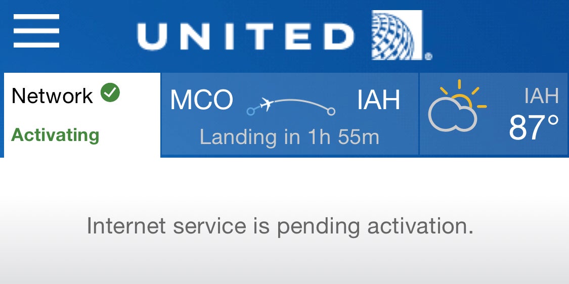 The satellite was clearly connected, though, since it was accurately displaying our flight status and I was able to load the United app.