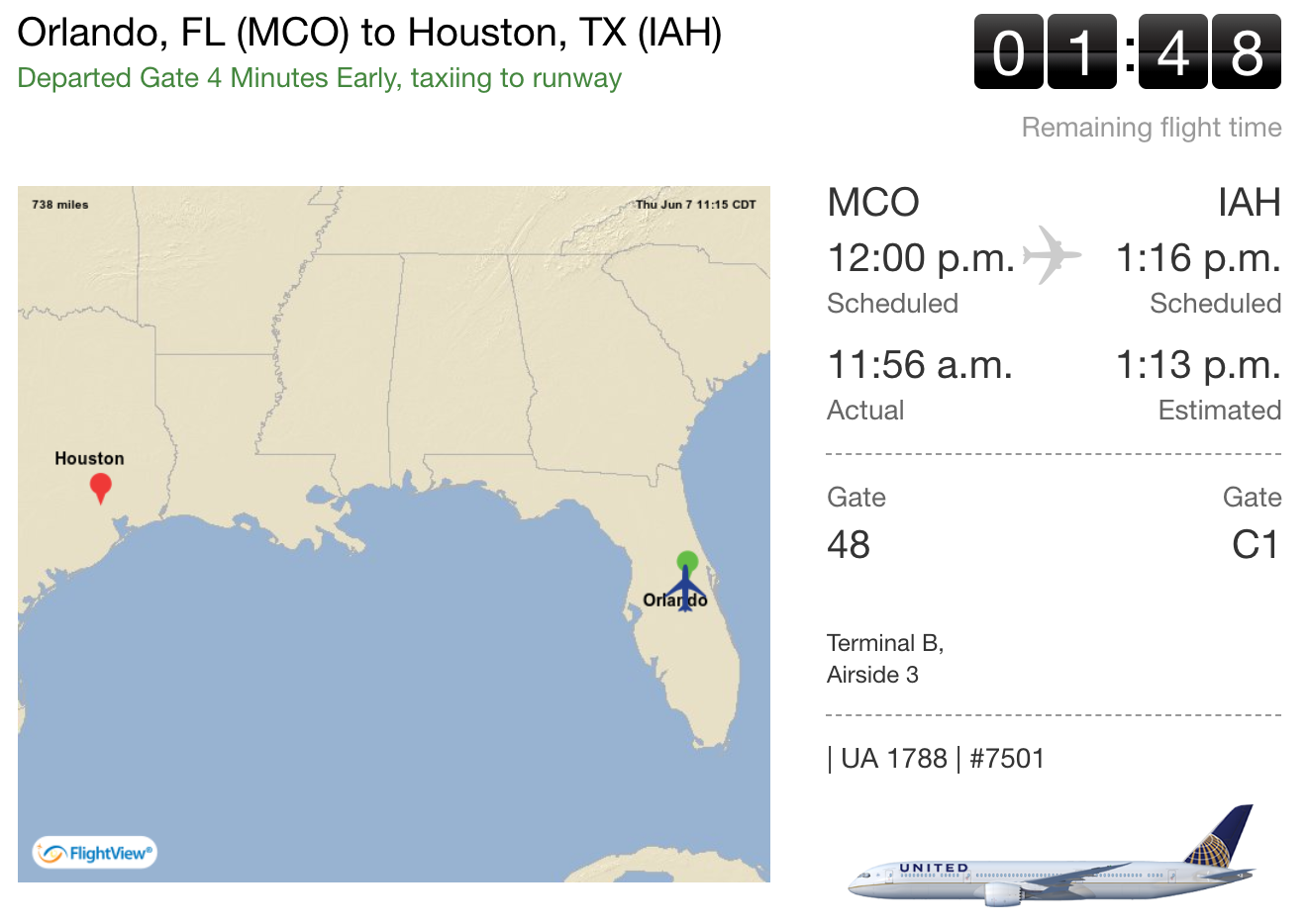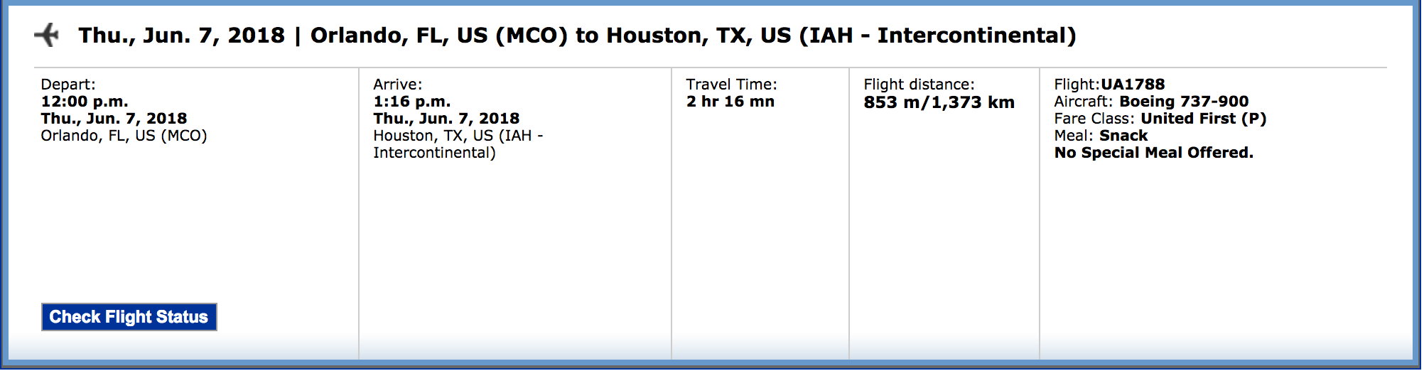 I joined United's inaugural 737 MAX 9 flight, from Houston to Orlando (MCO) on Thursday morning, which I reviewed in Economy Plus, then caught the 12:00pm reverse leg on the return. I booked a paid first-class ticket for the flight back to Texas, since I wanted to give both cabins a try, and didn't want to risk not having the upgrade clear on what I expected to be an in-demand flight.