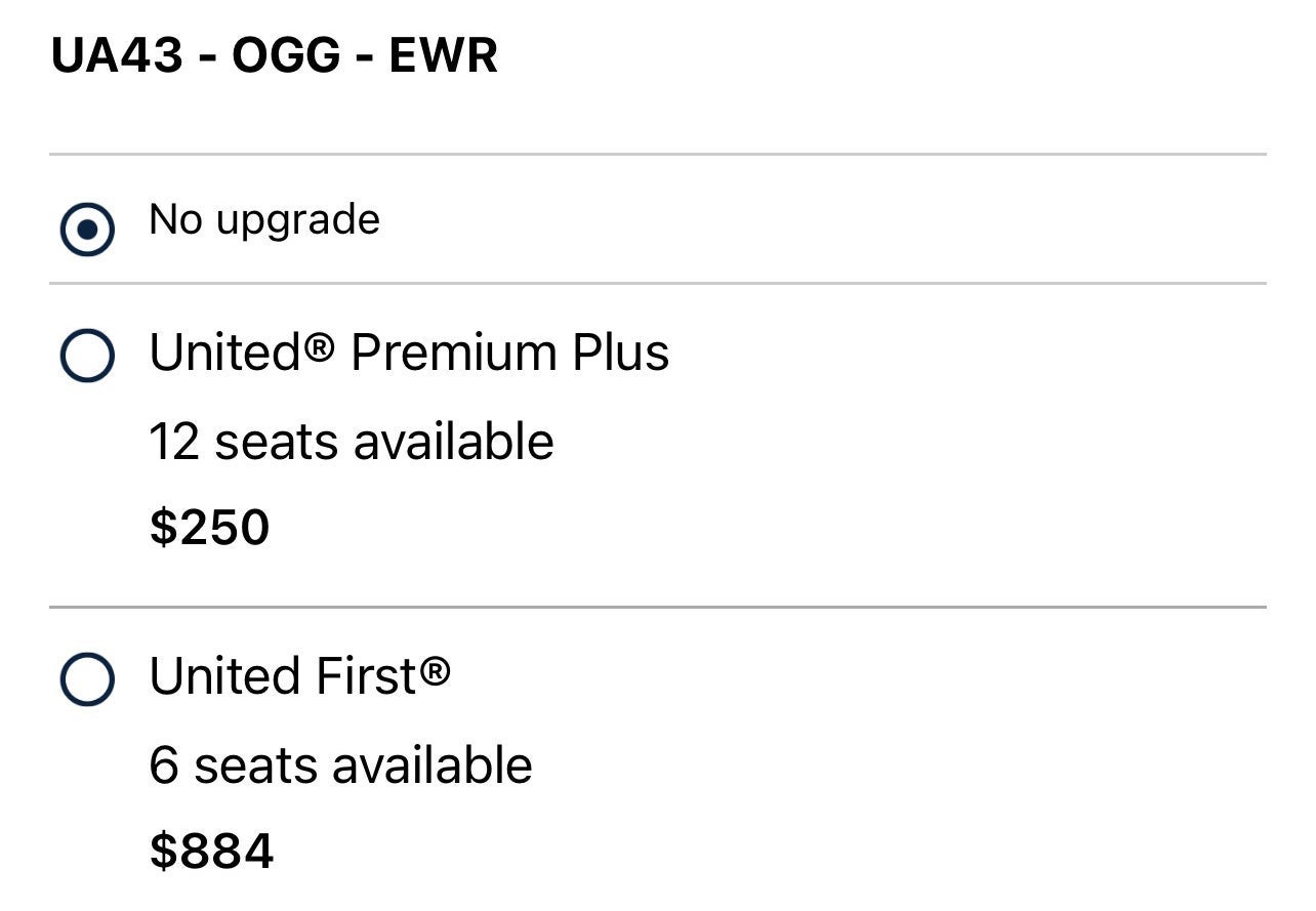 While I always prefer to confirm upgrade availability before booking a flight this long, there were roughly a dozen first-class seats still open the day before departure. That number quickly dropped, but I still held out for the upgrade, after (very) briefly considering buying up.