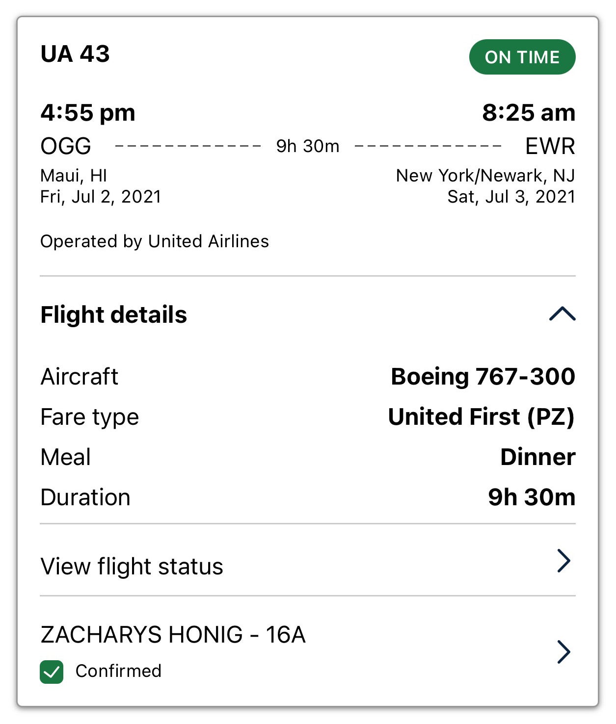 My girlfriend and I had originally planned to fly back from Maui a few days later, but we ended up leaving our hotel early and changing our departure plans at the last minute, booking a brand-new ticket for this flight.