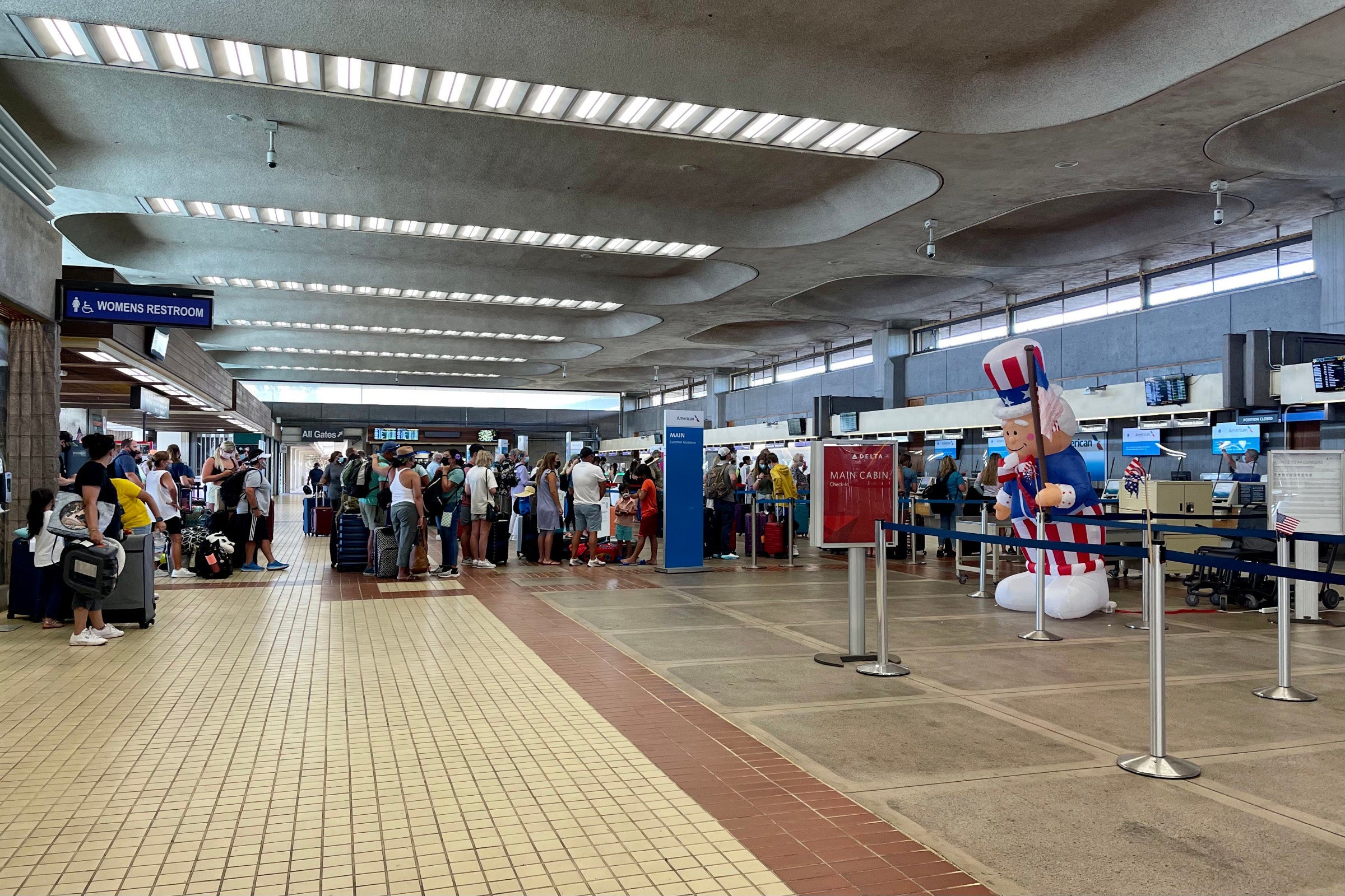 We managed to get through in just a couple of minutes, but the line for the American Airlines counter was out the door. Regardless of which airline you're flying, I'd be sure to add in a bit of extra time if you're planning to check bags or collect your boarding pass at the airport.