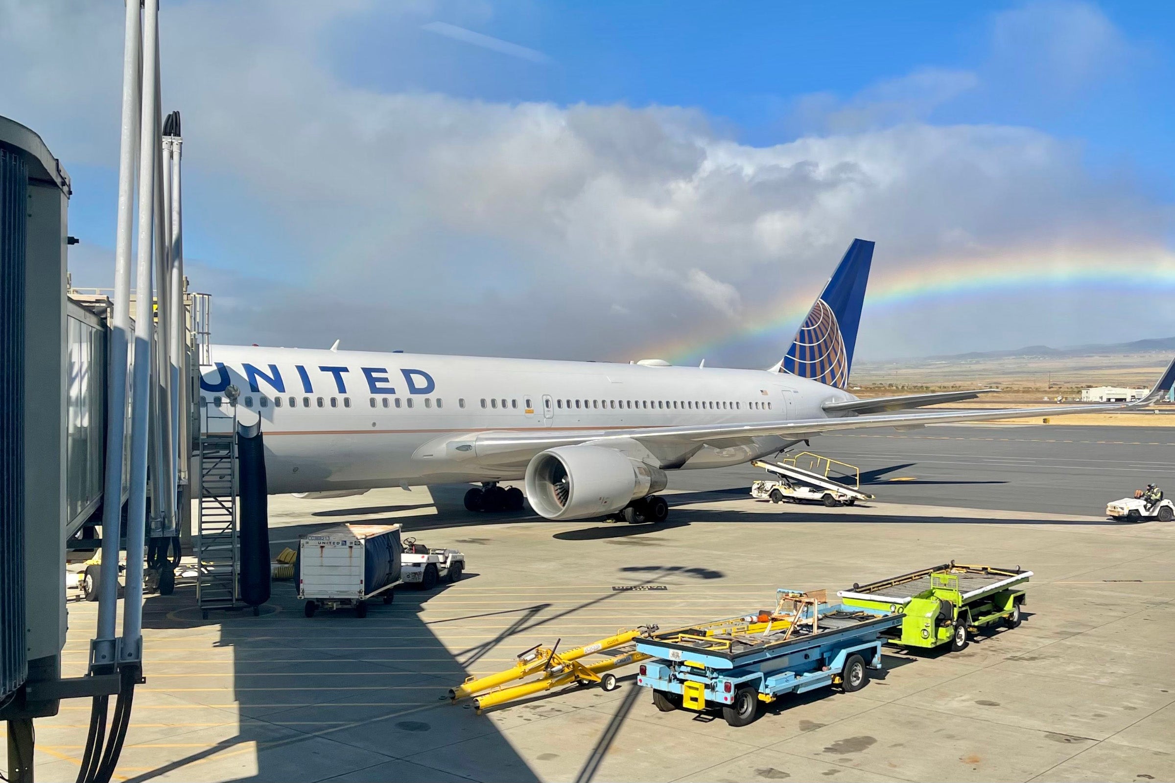 Much of the terminal is open-air, and the giant windows made it easy to get a view of our United 767-300ER during the walk to the gate.