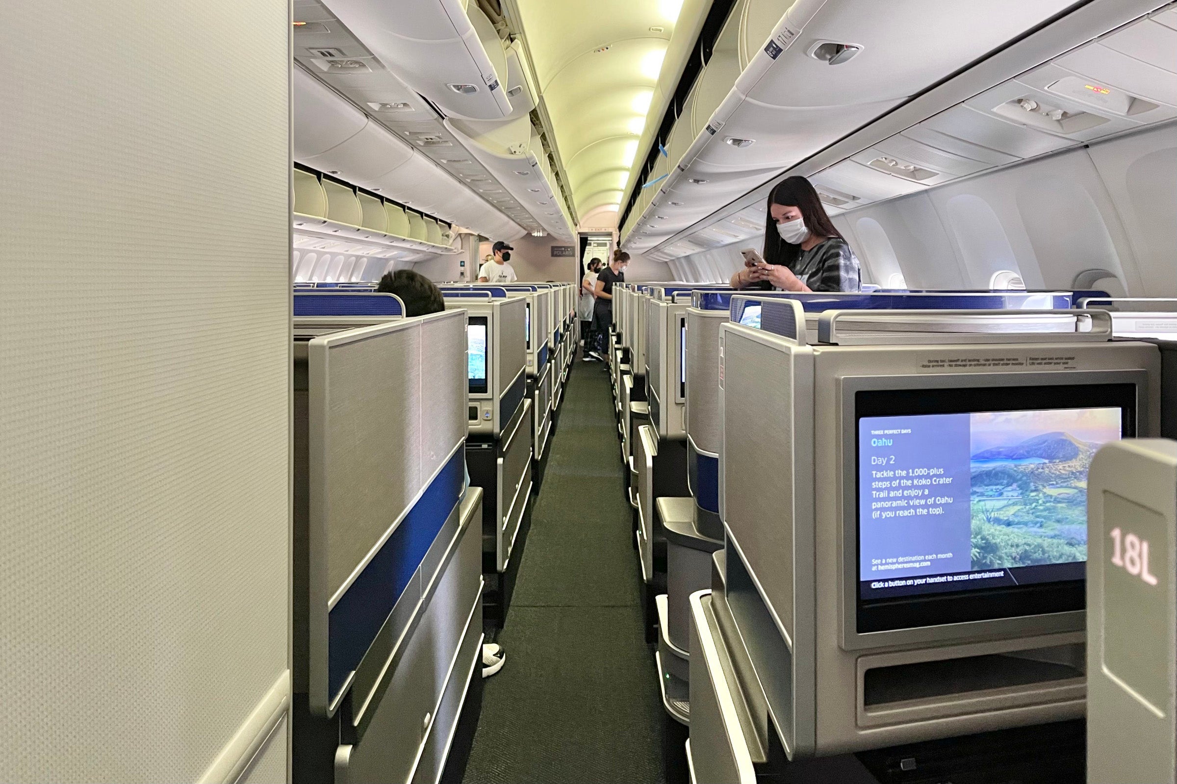 This particular aircraft type offers United's latest business class, Polaris, with an updated "pod" design and comfy lie-flat seats.