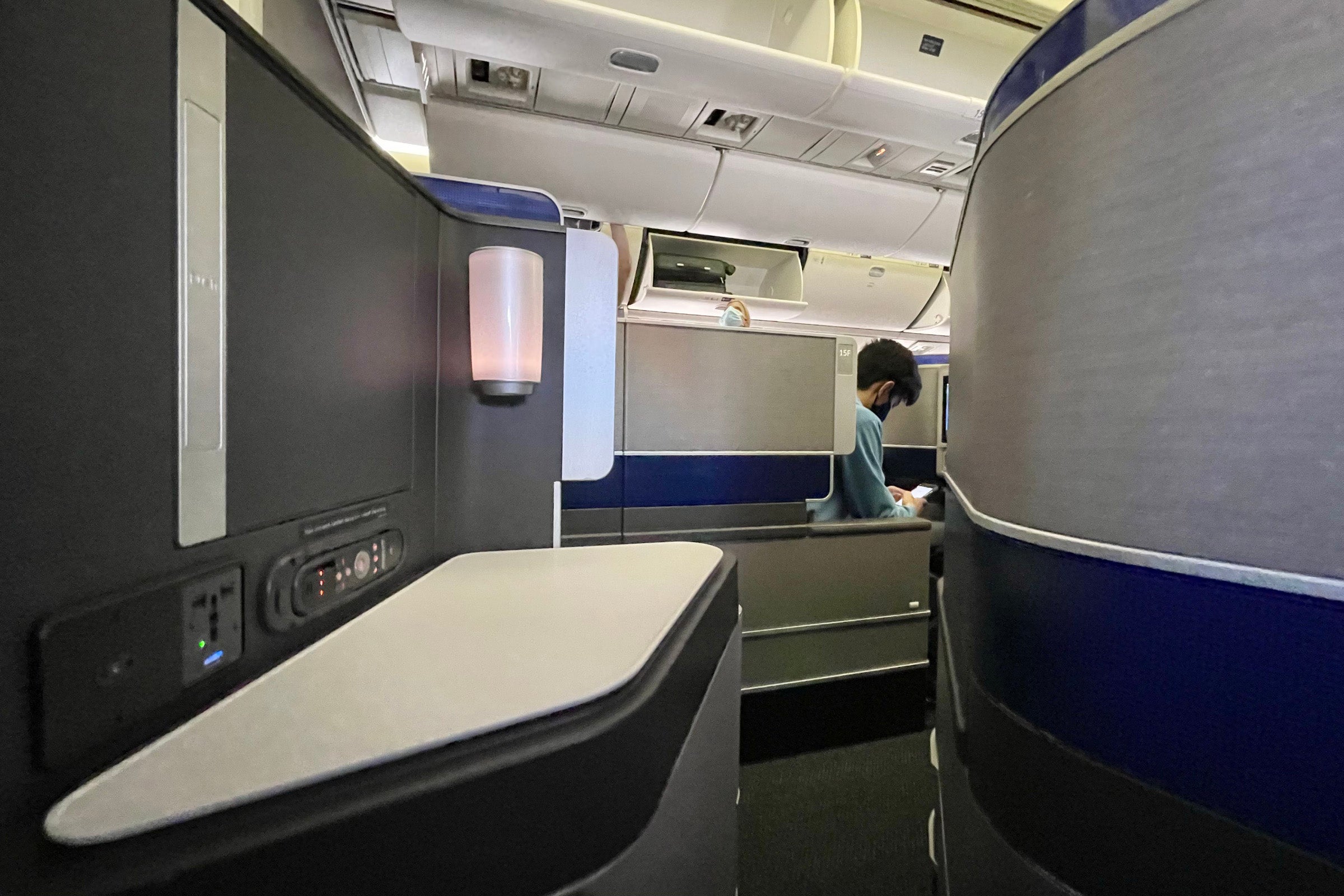It's technically reserved for Polaris customers — note the blue curtain separating Premium Plus — but flyers from other cabins were coming up to use it as well.