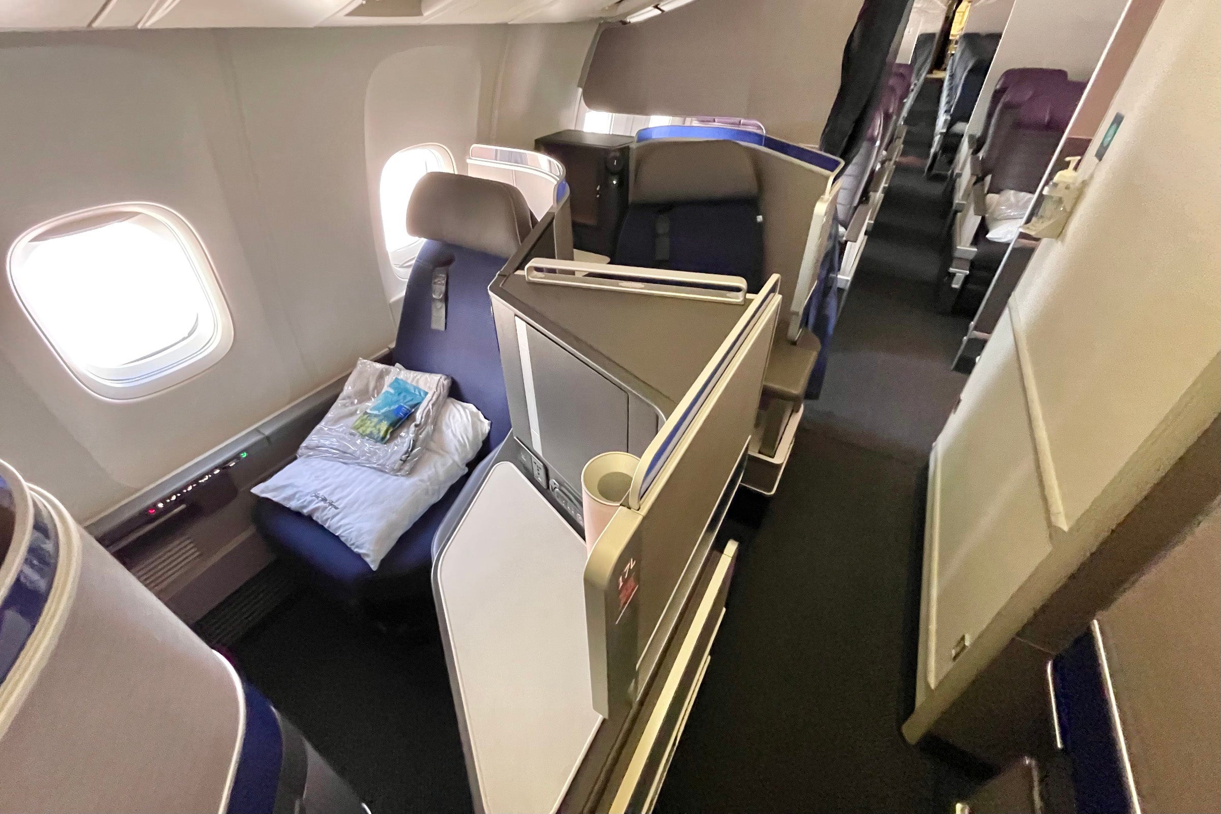 Since the business cabin is branded as "first class" instead of Polaris on this route, you won't get the full business-class amenities, including the mattress pad and full-size comforter.