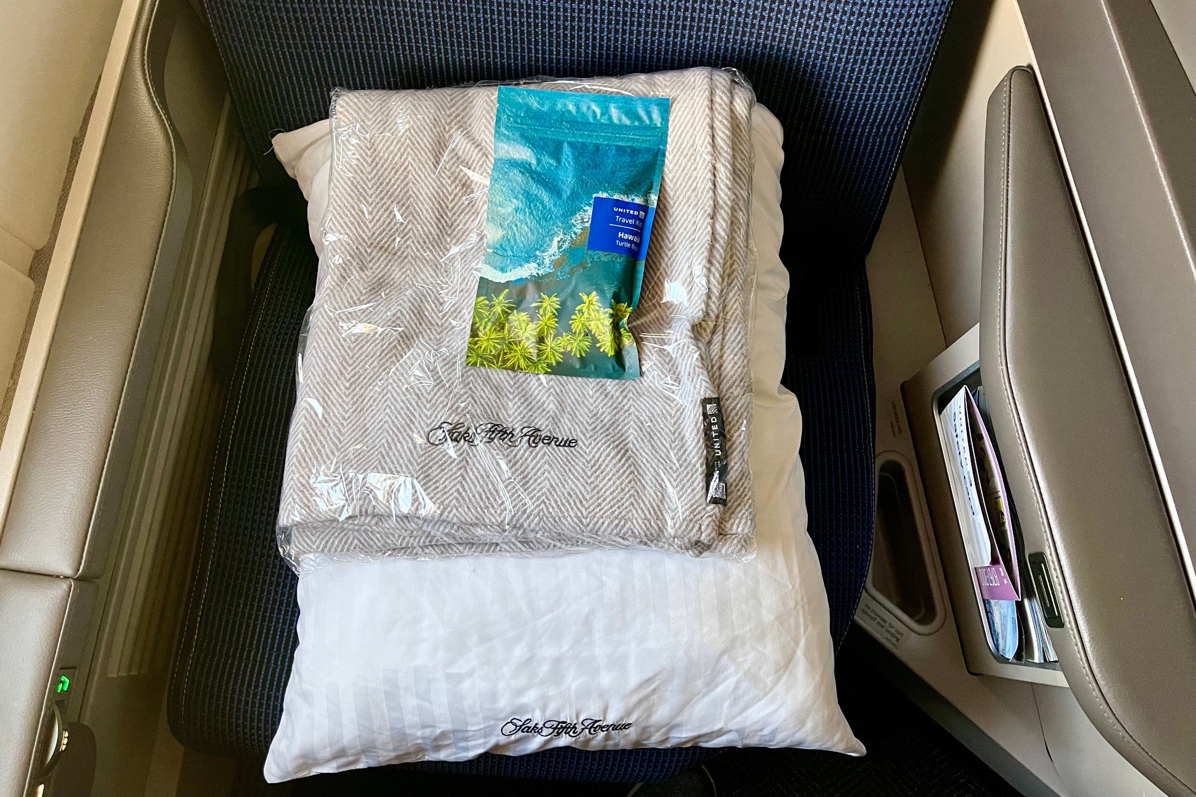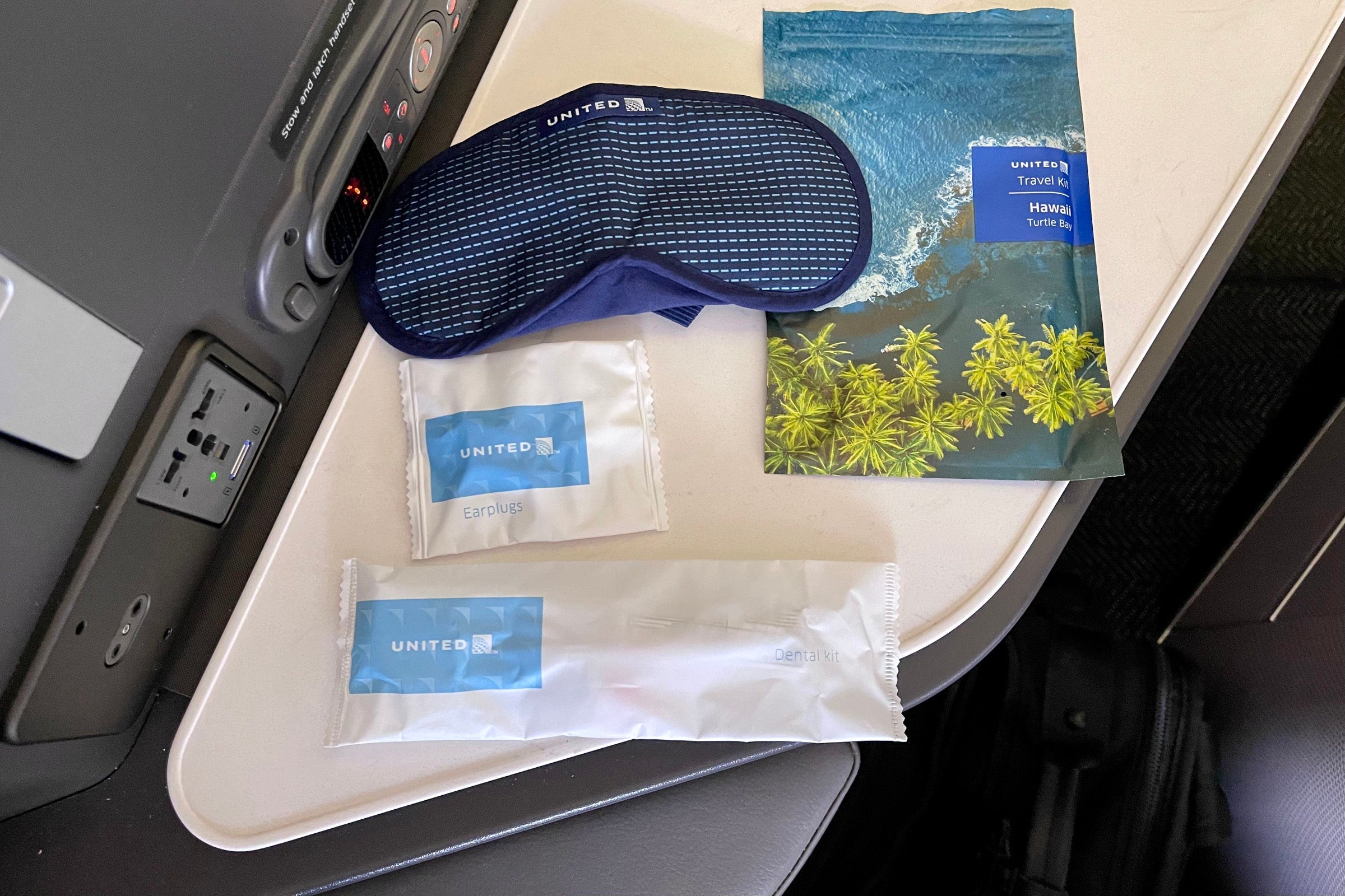 First-class passengers also get a special amenity kit on Hawaii flights, including an eye mask, earplugs and a dental kit.