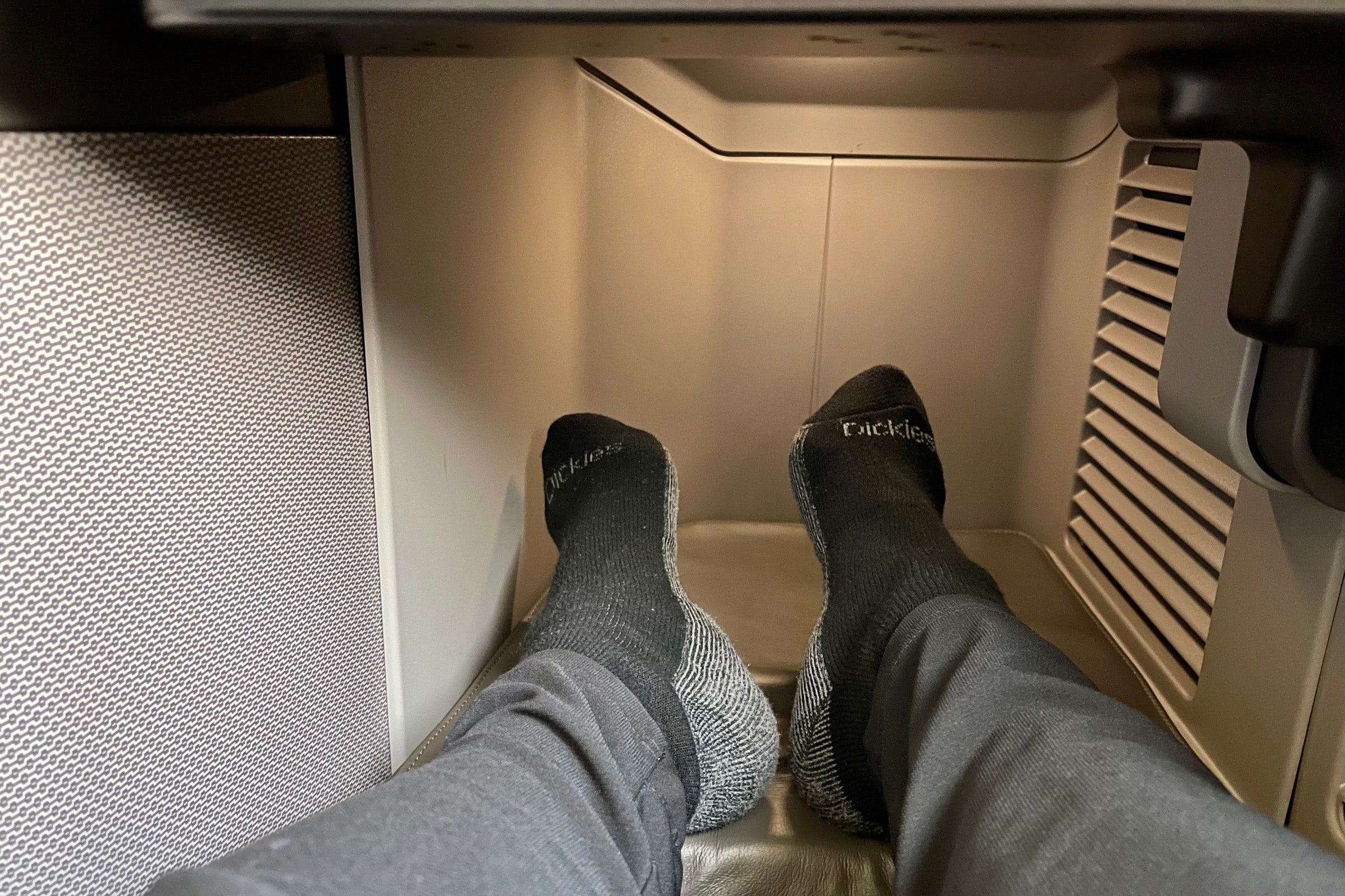 The footwell was large enough for me to sit and sleep comfortably — there's no need to cram in your feet.