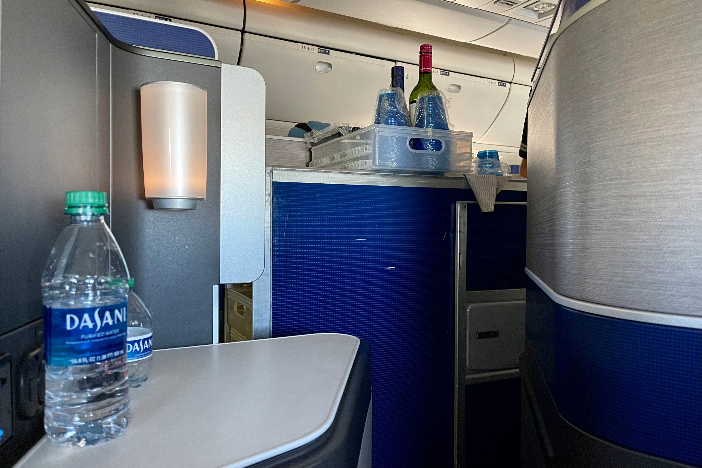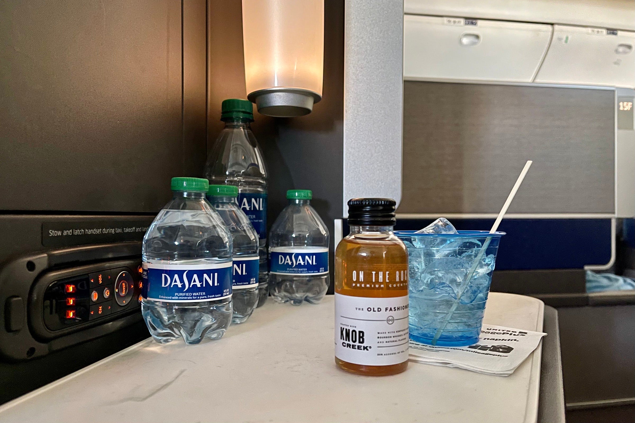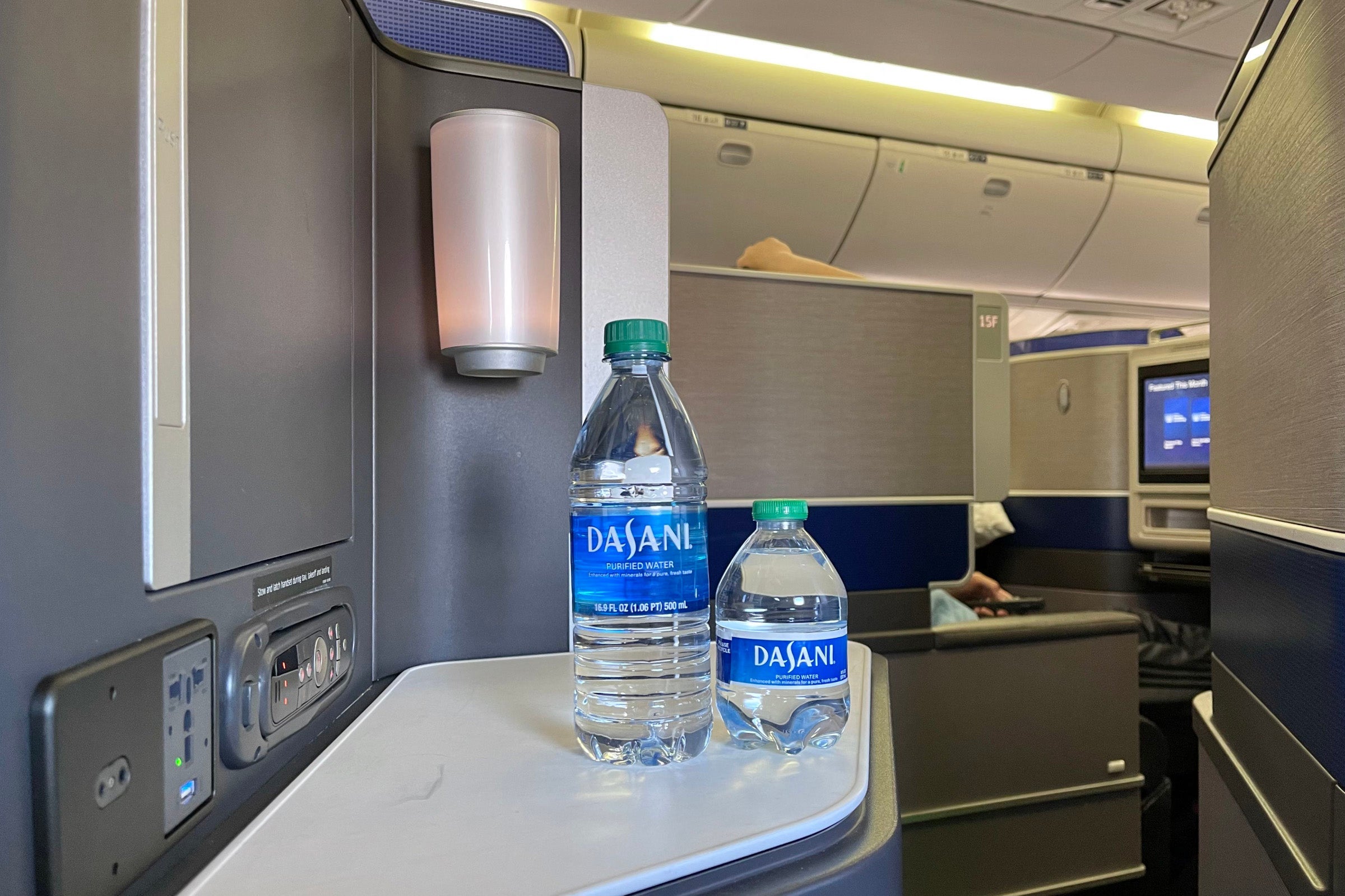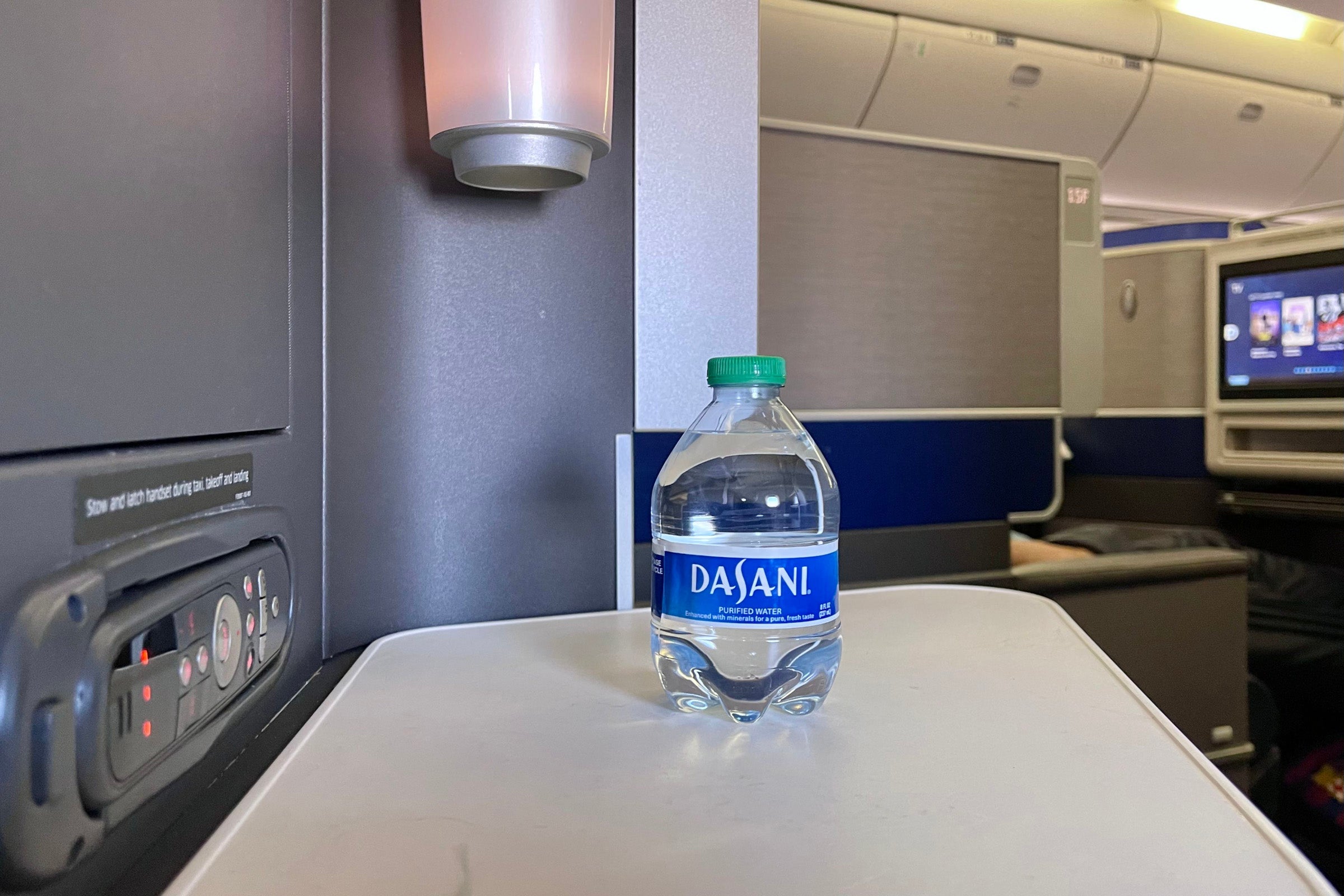 United offered all flyers a tiny 8-ounce bottle of water. According to TPG's sister site Healthline, experts recommend consuming at least eight times that amount of water in a day. I usually drink even more, so I asked a flight attendant if I could have one of the larger bottles from the galley.