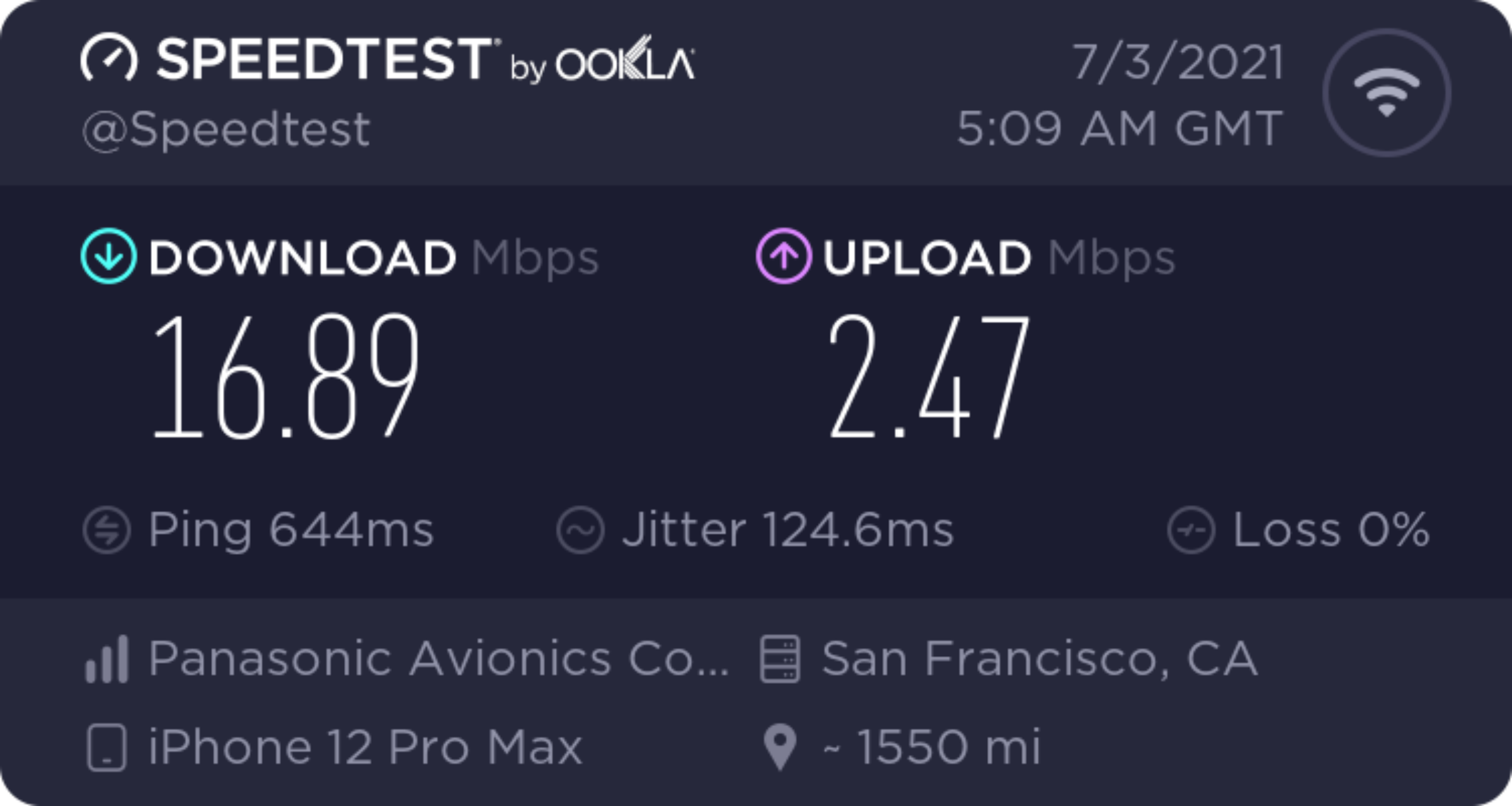The speeds were very good — I was able to get some work done and respond to plenty of questions and comments about the "bird incident" throughout the first few hours of the flight.