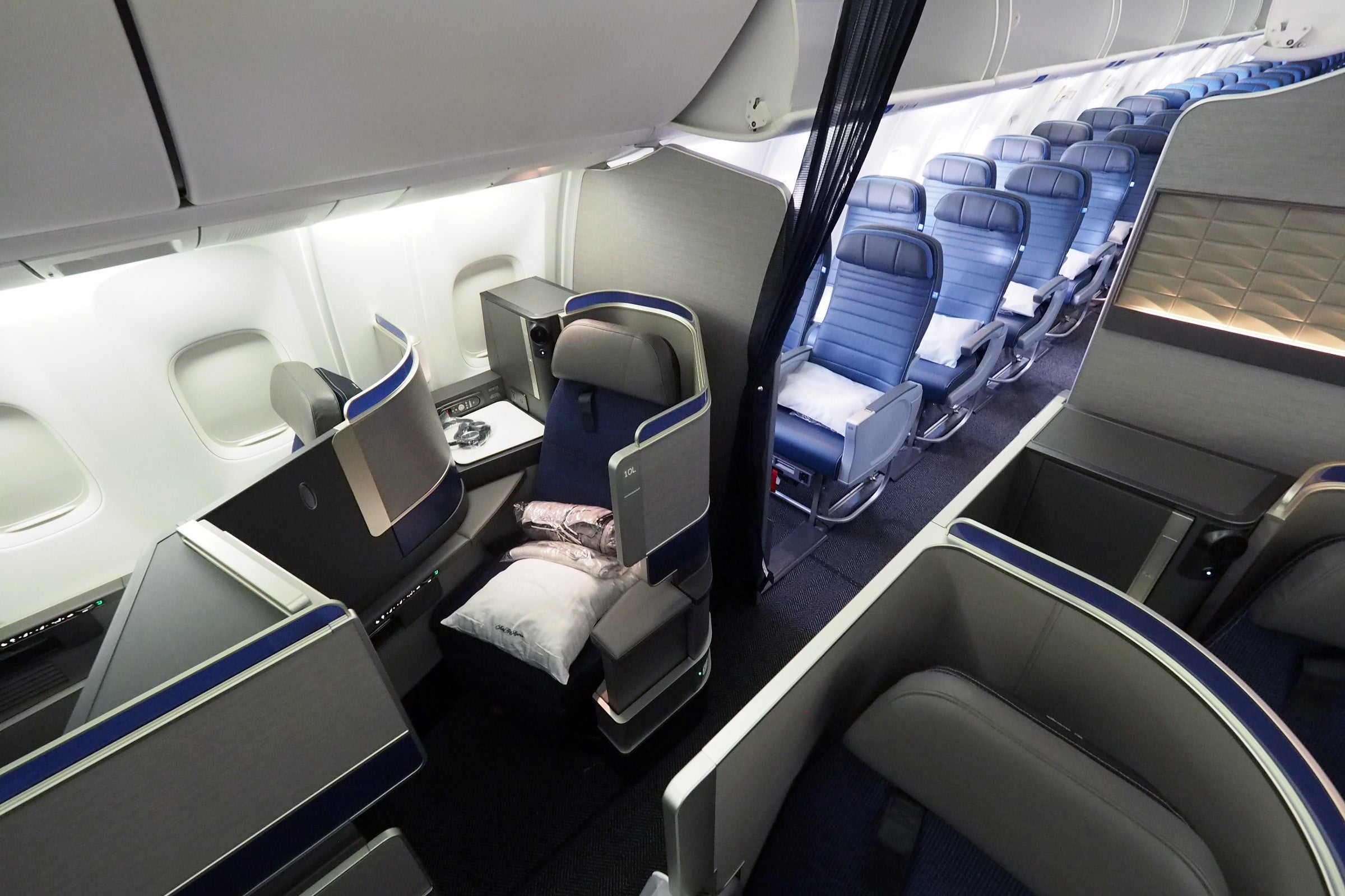 Of course, in addition to the new seat, all international flights also offer the Polaris "soft product," which includes improved food and beverage offerings and Saks Fifth Avenue bedding. There's a large pillow, a light blanket and a comforter waiting at each seat, and passengers can request gel pillows and mattress covers on all international flights, plus pajamas on United's longest flights. Unfortunately the mattress covers hadn't been boarded for this flight, but a flight attendant offered me an extra comforter instead, which did the trick.