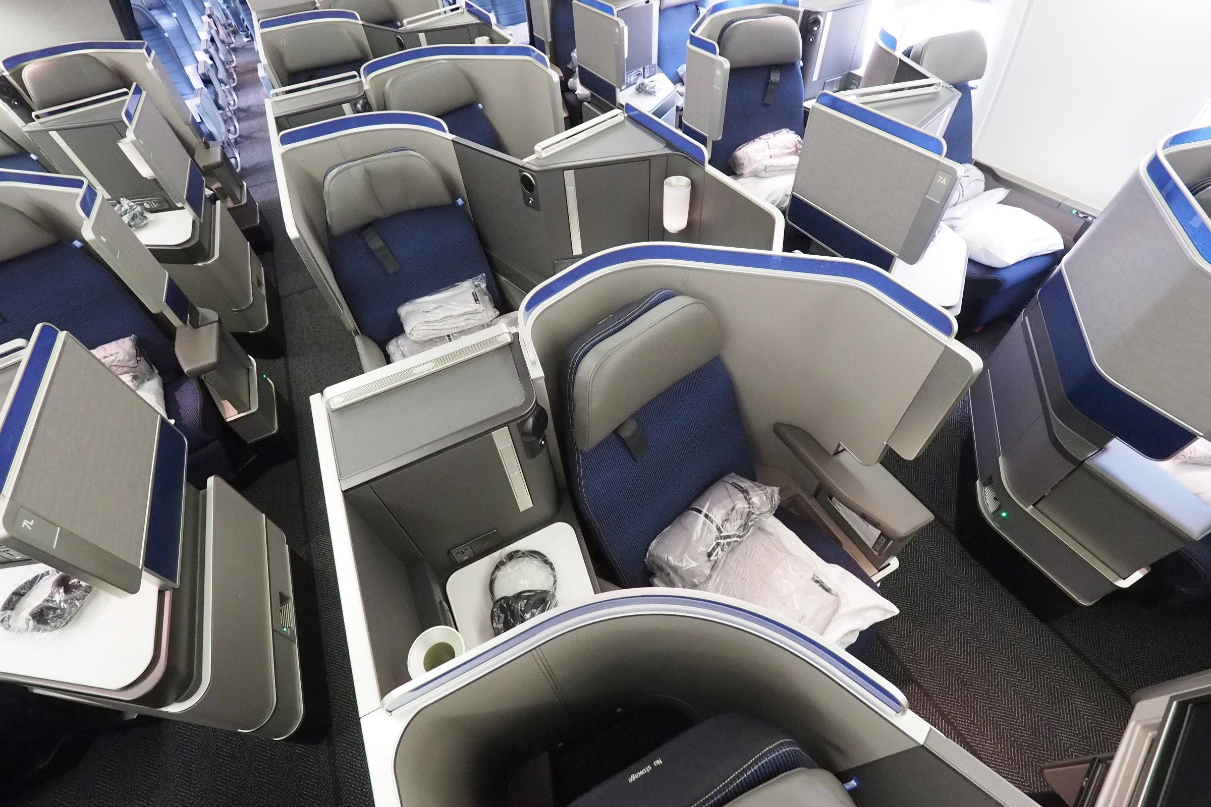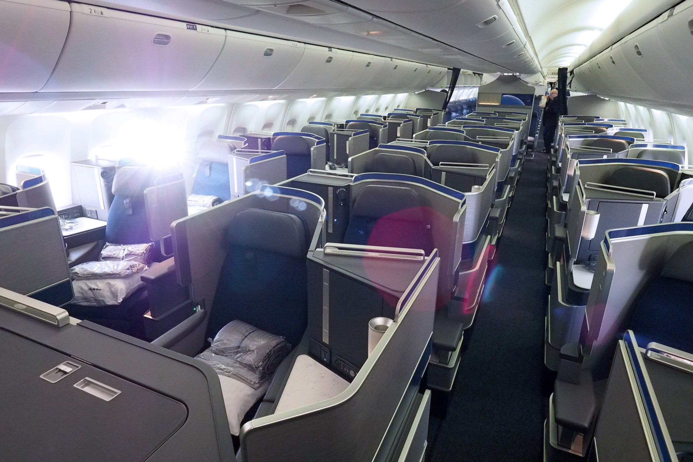 In short, the retrofitted 767-300ER maintains the 30 business-class seats installed on United's variant with a 2-1-2 configuration, however on this plane, seats are arranged in a far superior 1-1-1.
