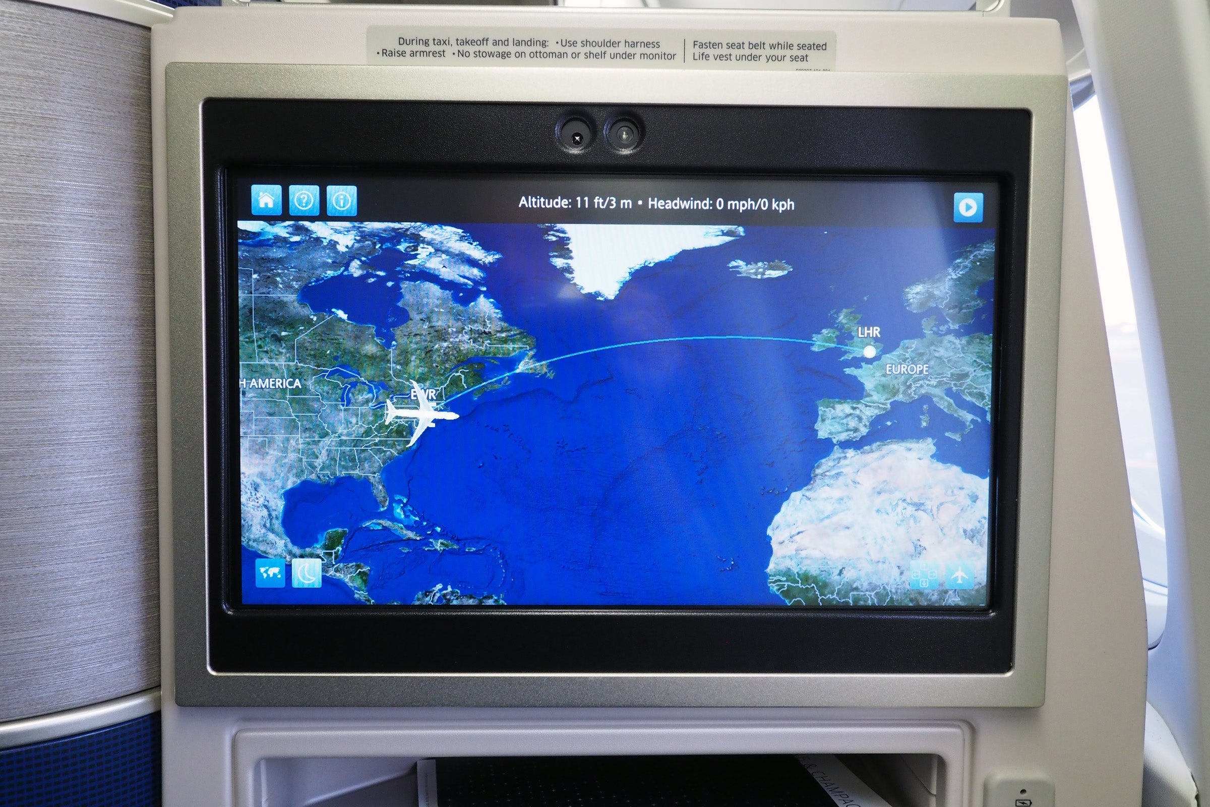 Our departure ended up being delayed by 30 minutes, due to heavy tailwinds that would bring us to London in just five hours and 56 minutes. Had we left on time, we would have arrived some 30 minutes before Heathrow's 6:00am curfew, which would have required circling a bit before landing. Notably, the 6:45pm flight ended up beating us to the gate by six minutes — it's worth keeping the curfew in mind when picking a flight, since ultimately a later option could arrive around the same time during periods of heavy tailwinds.