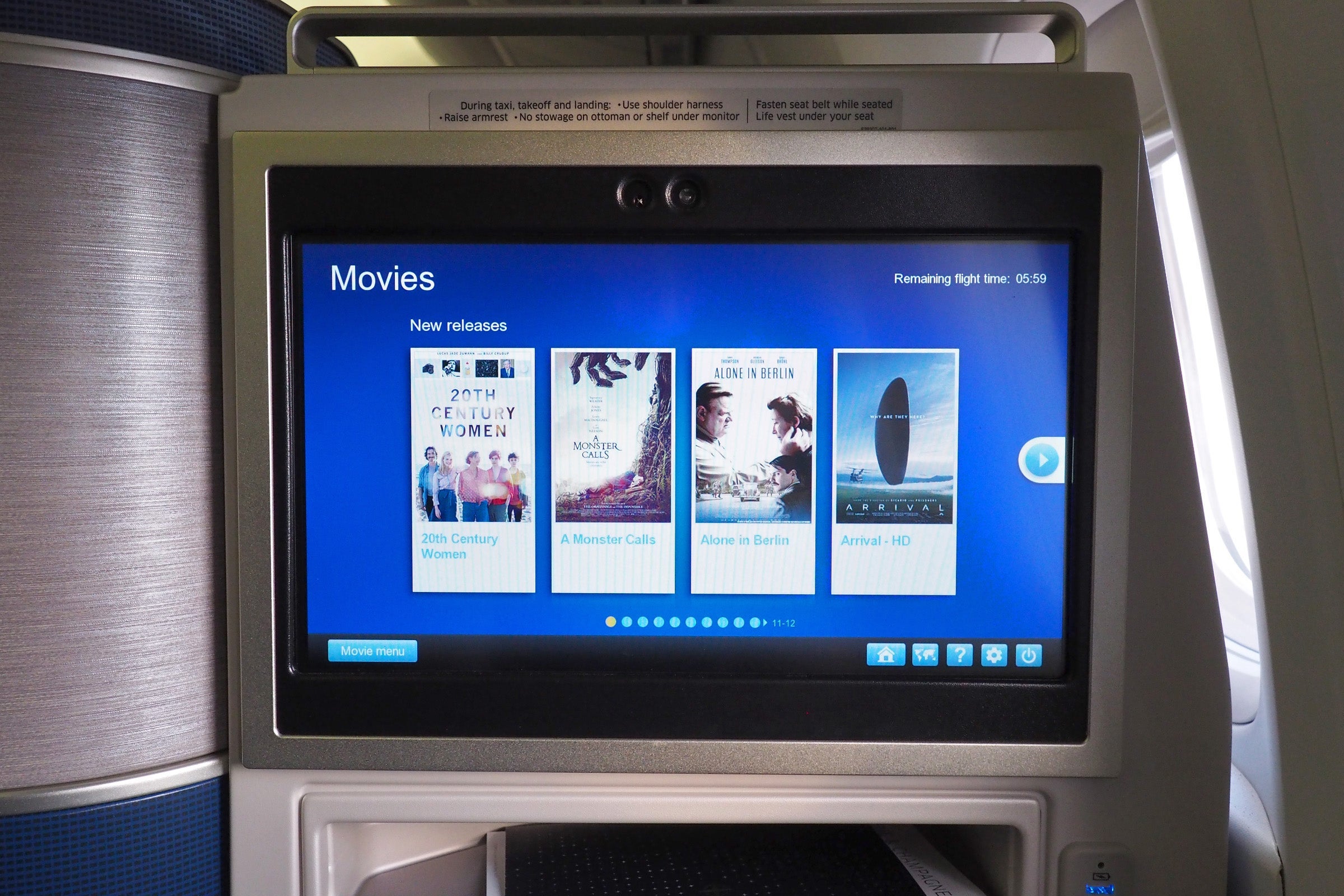As I mentioned, each seat has a 15-inch HD in-flight entertainment system, with a range on on-demand entertainment.