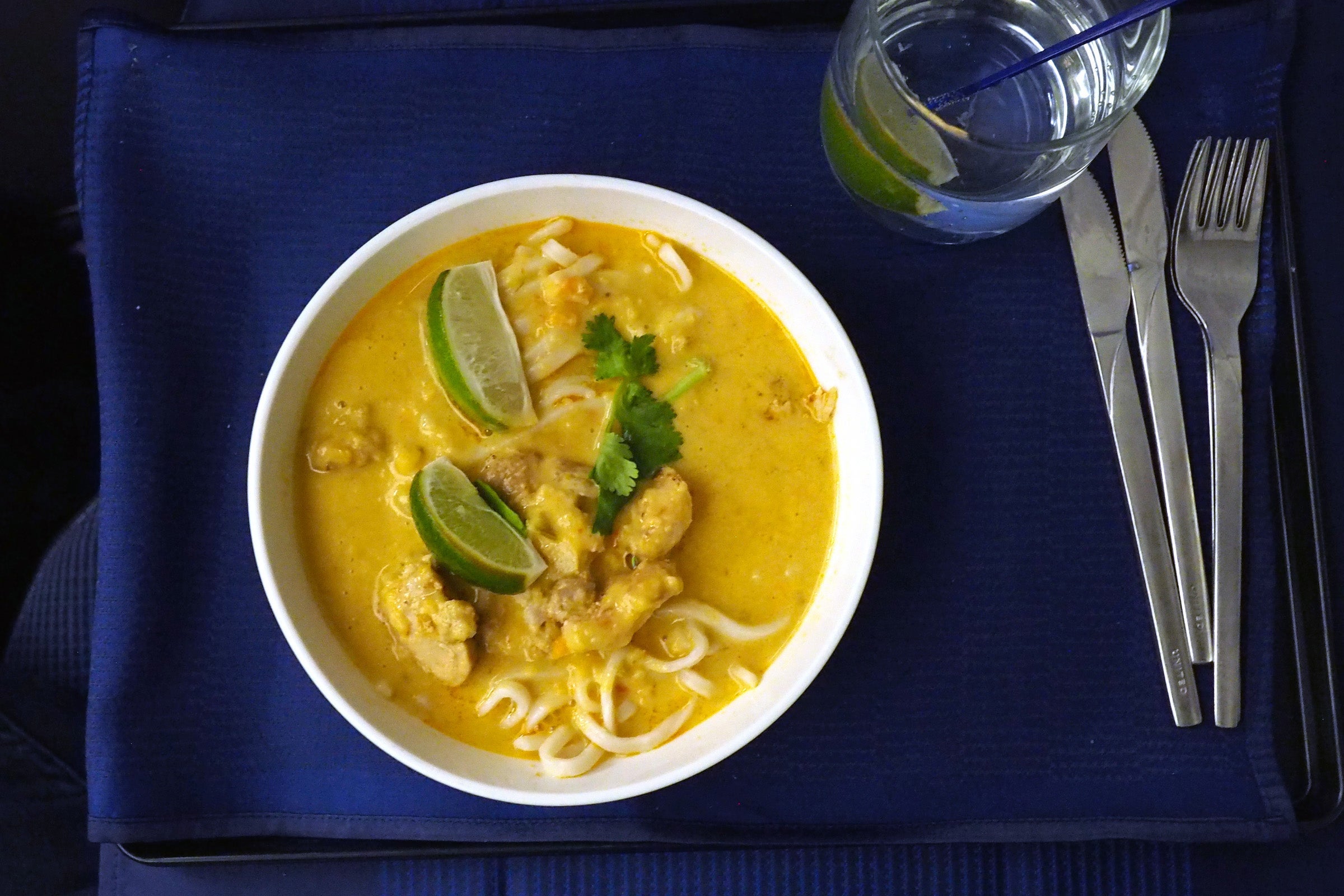 My spicy chicken entree arrived two hours and 15 minutes into the flight, which is a bit crazy. This ended up being nearly identical to the "Asian fusion chicken soup" TPG and I tried on the preview flight in February — I'm not sure why they switched up the name, but it was just as delicious as last time.