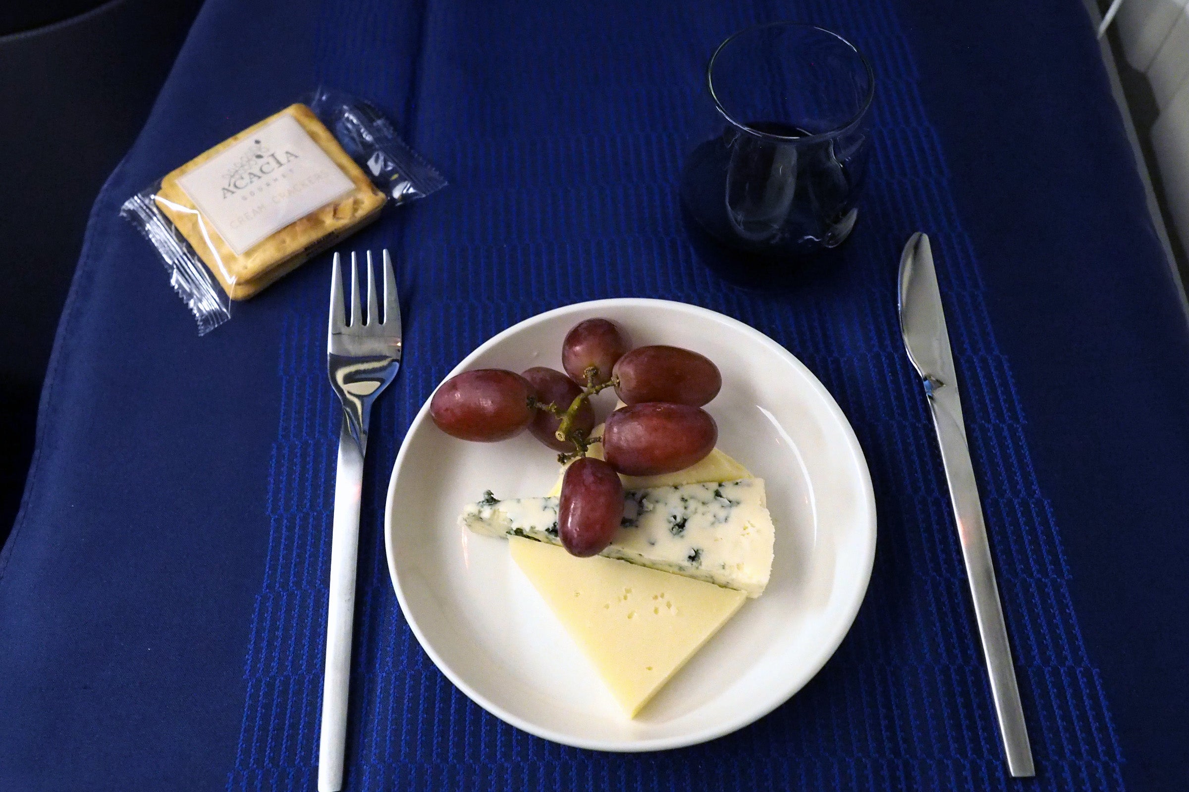 Well, you definitely won't go hungry. Unfortunately that means that there are many courses to get through, and depending on the crew, turbulence and other factors, you could easily end up halfway into a transatlantic flight before the first meal service is done. That was the case for this flight. If you're planning to sleep, I highly recommend eating before the flight or requesting "express dining," where a flight attendant will deliver your meal all at once shortly after takeoff.