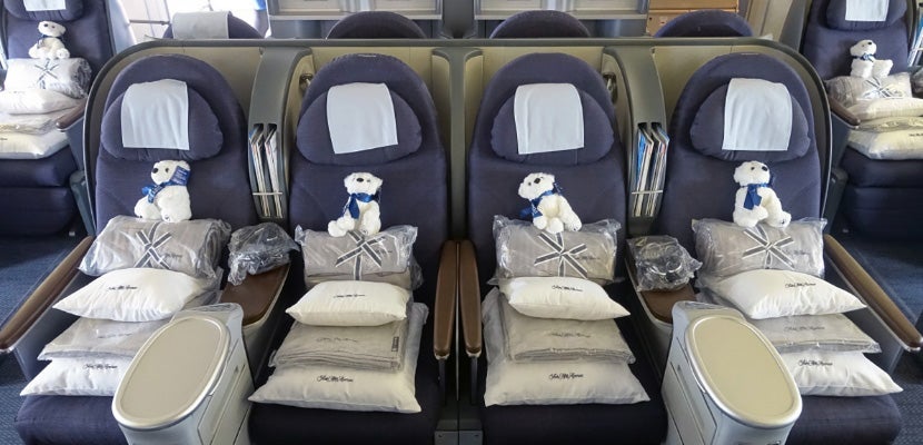 Each seat is loaded up with Polaris goodies, including a large pillow, a small pillow, a light blanket, comforter and — for the first few days — a stuffed polar bear.