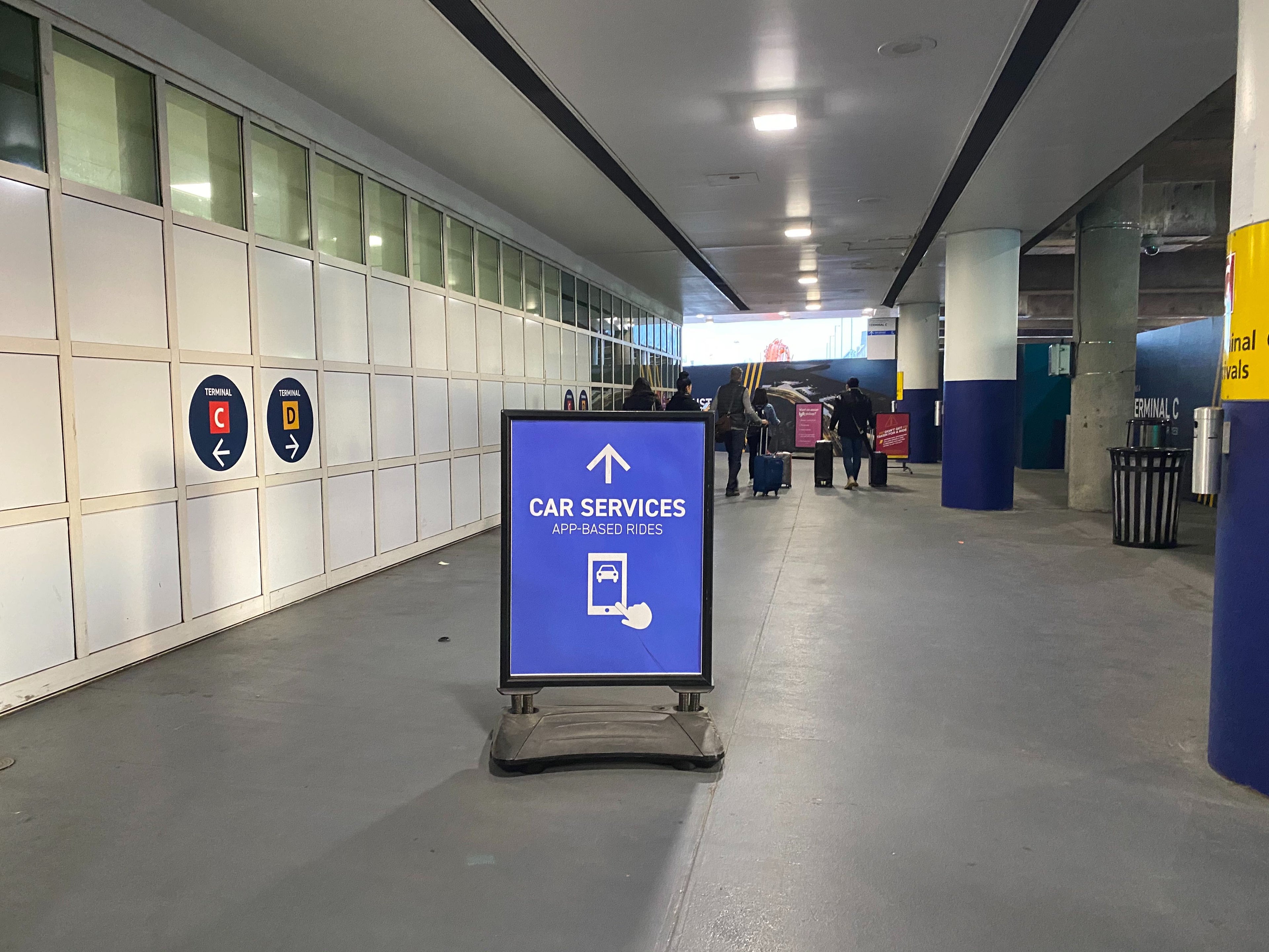 Follow the signs to "Car Services" located throughout the ground level of Terminals C and D. Photo by Liz Hund/The Points Guy.