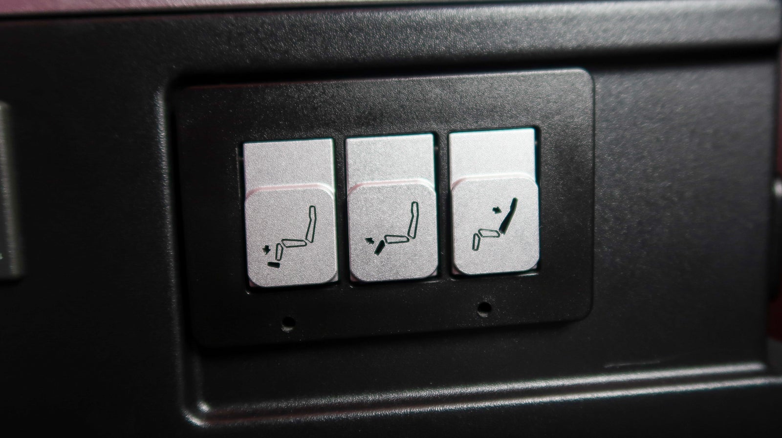 My bulkhead seat came with three preset options for reclining the seat. There was the standard recline, the legrest option and a footrest option. Additionally, the headrest was customizable, so you could move it up or down to your liking, as well as fold the side flaps for extra support.