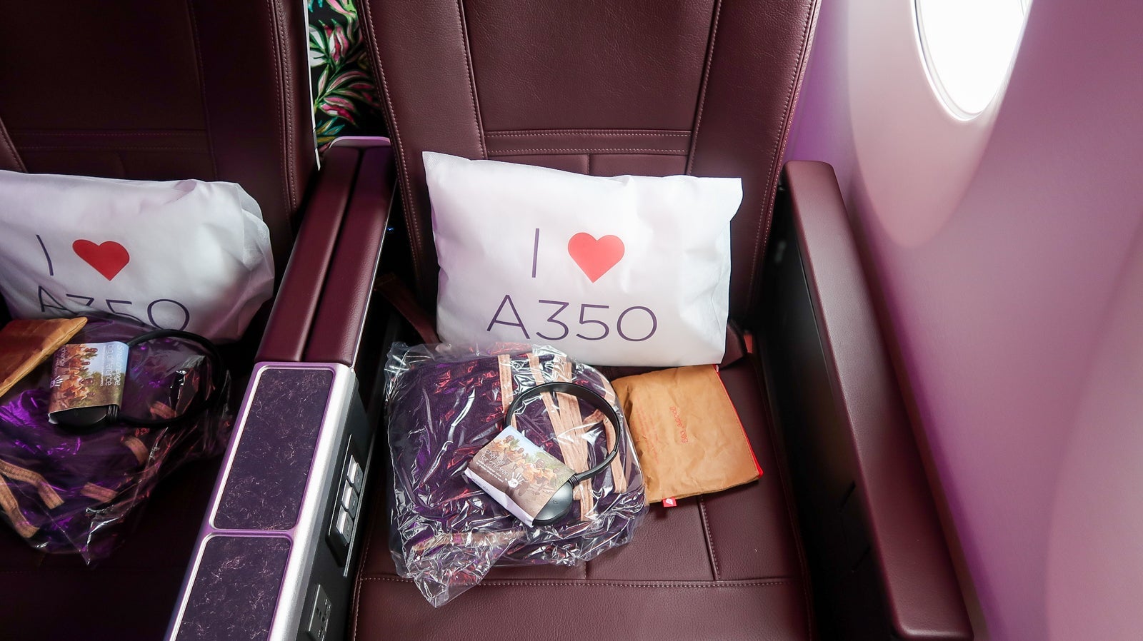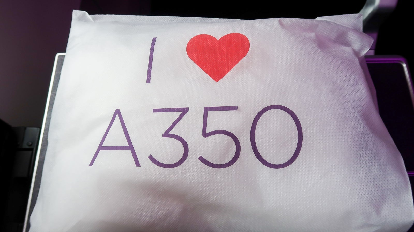 I loved the amazing, customized "I (Heart) A350" pillows, which were clearly made just for the introduction of the aircraft into service. As far as the quality, I found the pillows to be perfectly reasonable with stuffing. Though I didn't use it to sleep, I think it would have been more than sufficient.