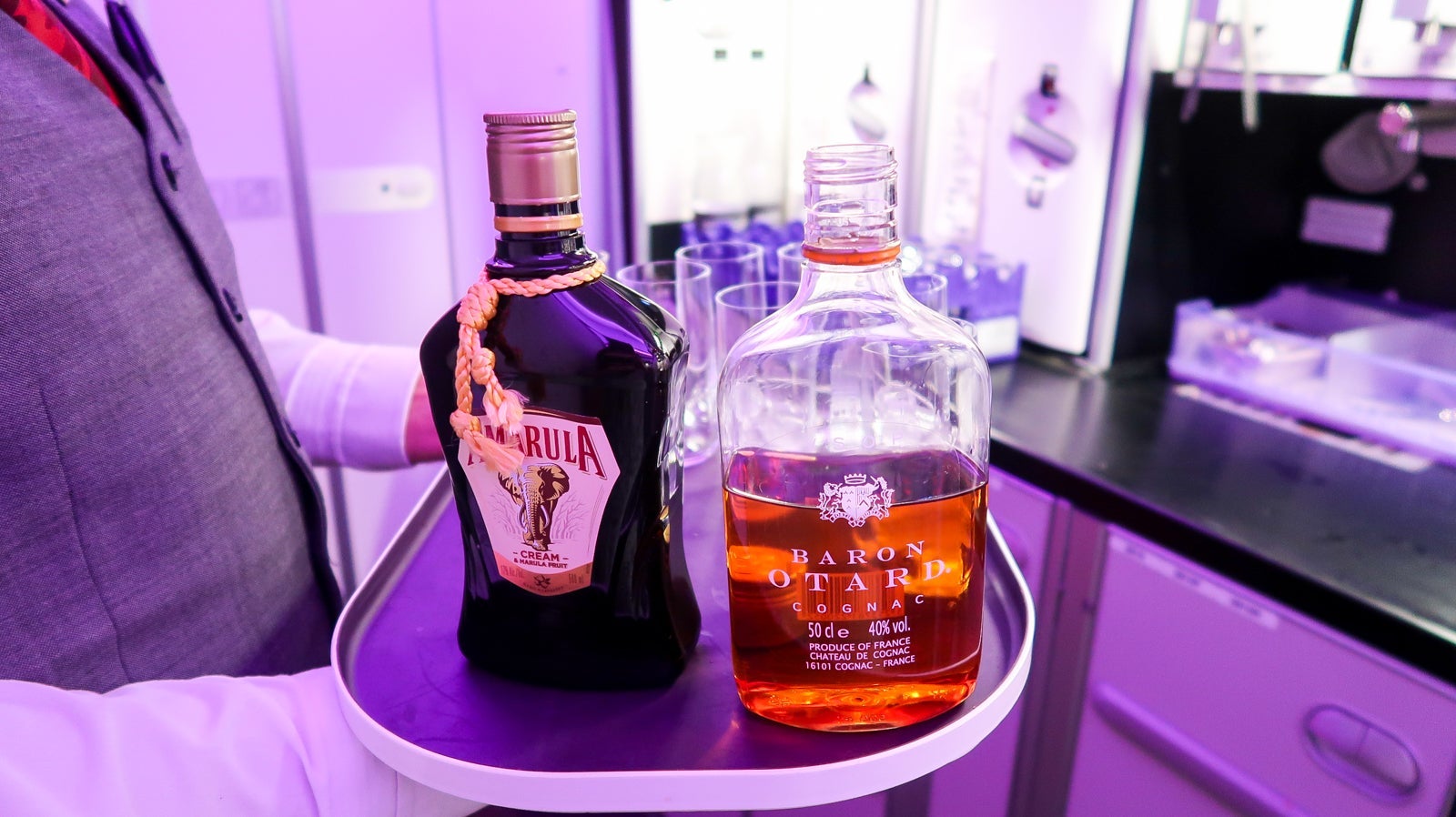 Soon after trays were collected, flight attendants came through once more to offer liqueurs: Amarula cream, which retails for around $20 per bottle, or Baron Otard Cognac, which retails for around $40 per bottle.