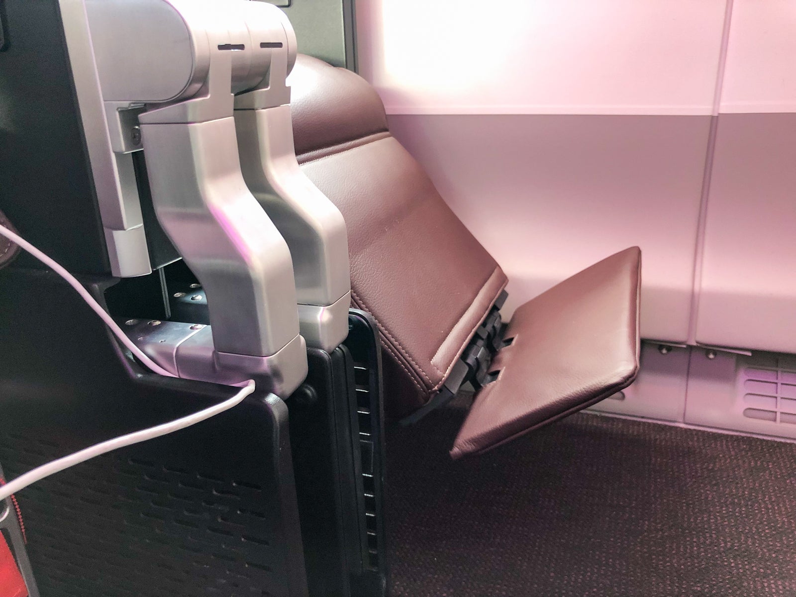I found the legrest and footrest on the bulkhead row to be useful. Although I didn't sleep or lounge at all on this flight, I did recline the seat just to test the comfort of it. I found the footrest to be rather close in, but the added support was a huge win, especially on a long-haul flight.