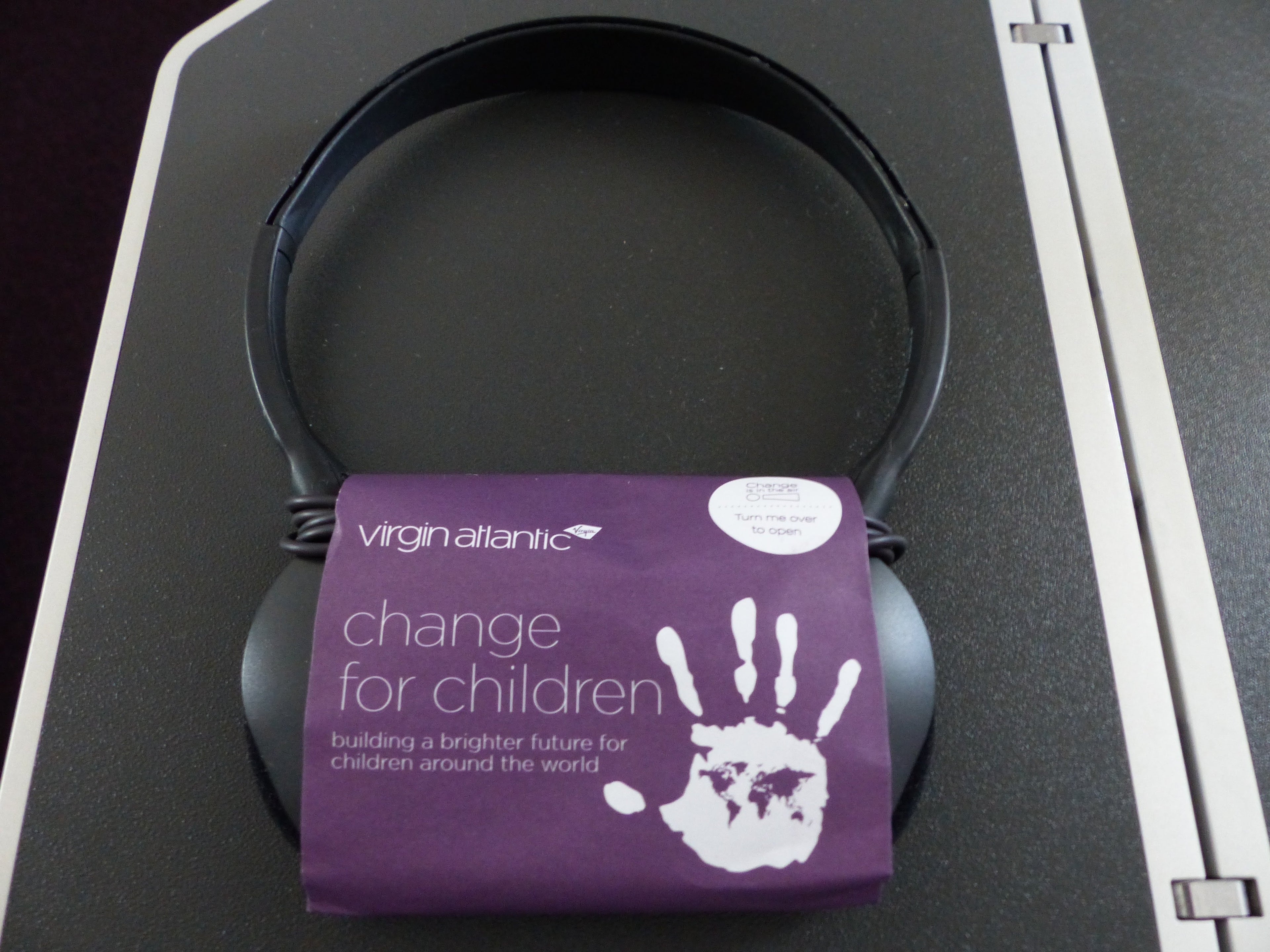 The headphones were free; packaging explained how passengers could contribute to a charity called Change for Children.