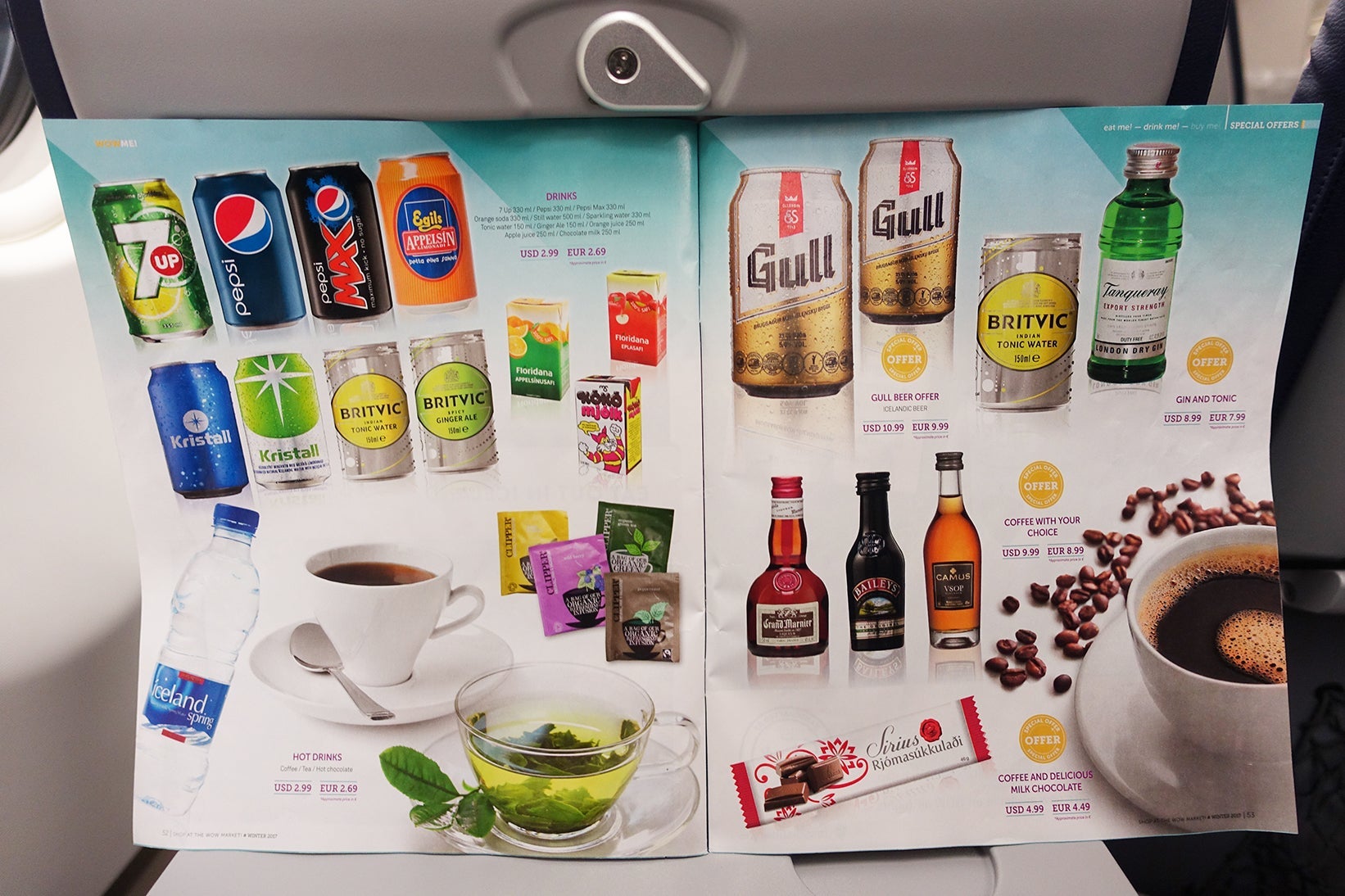 One thing that frustrates me about low-cost carriers is that they don't even offer passengers complimentary water, so you should either be prepared to buy a bottle or two on board, or make sure to bring your own. Here's my beautiful $2.99 bottle of Icelandic spring water.