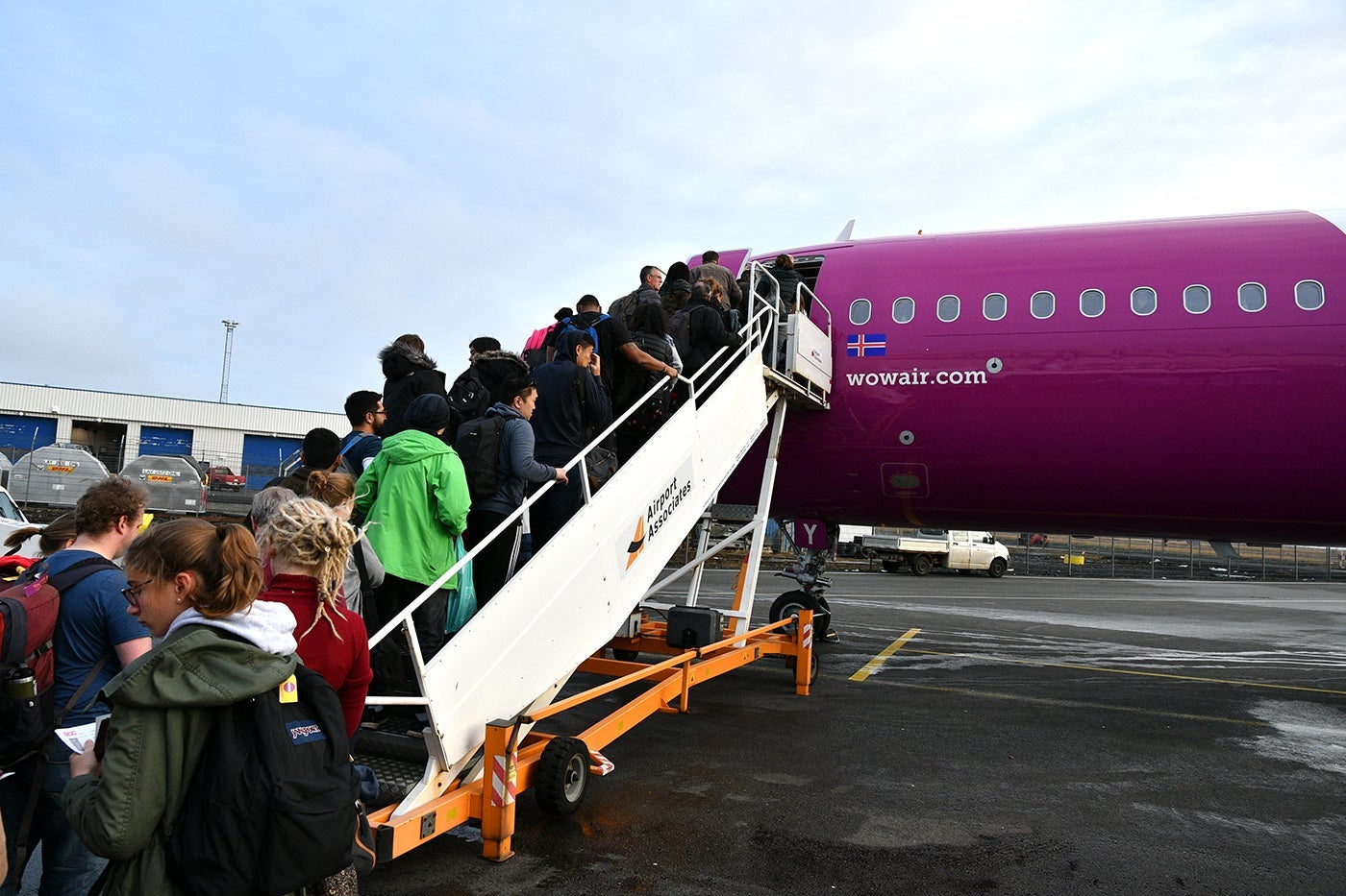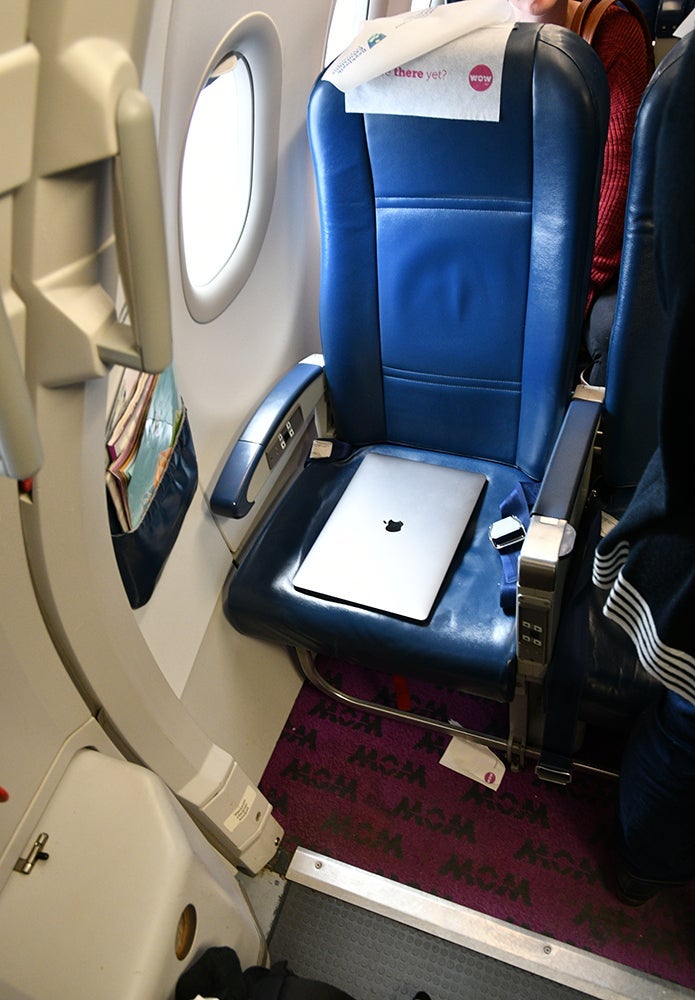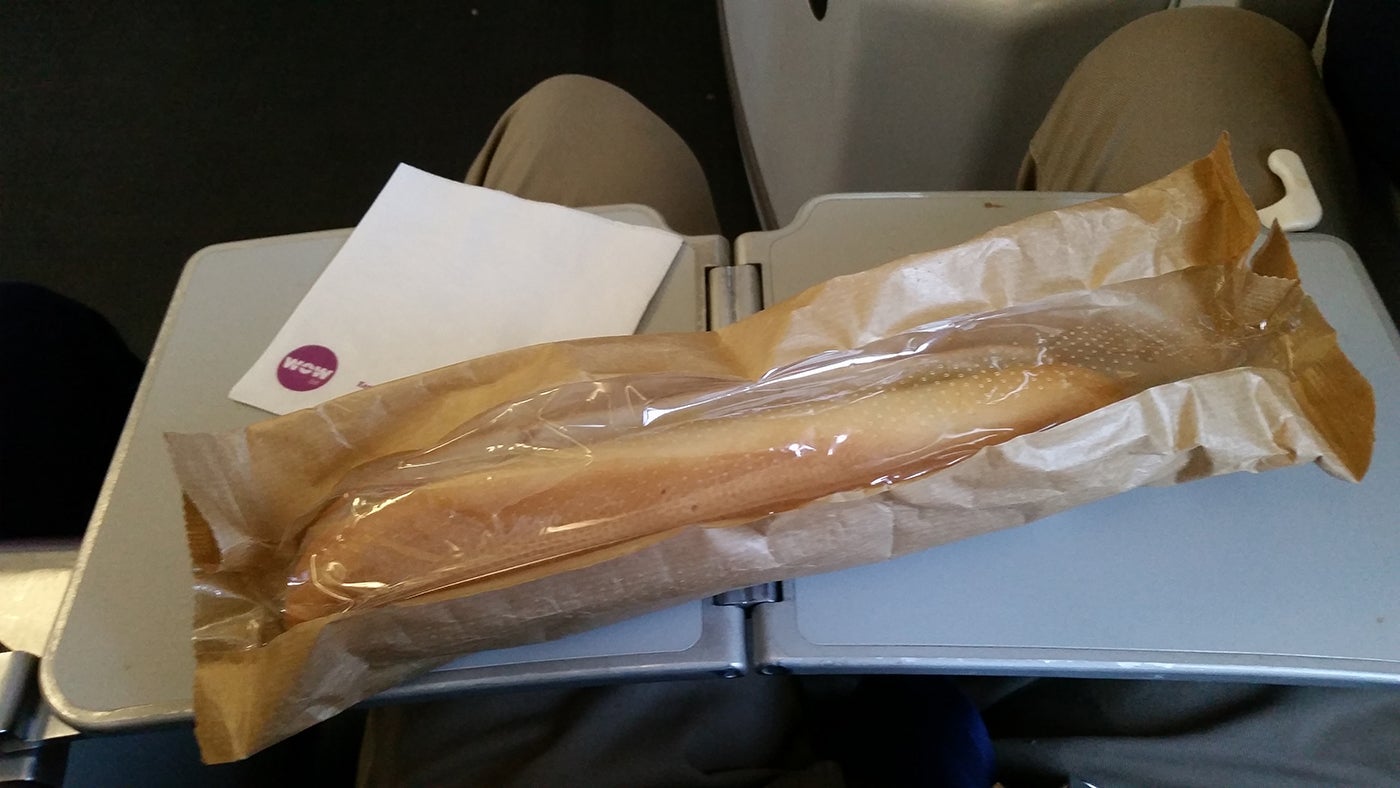 At the gate, an announcement said that the airline was seeking two volunteers to take a flight the next day in exchange for a roundtrip on WOW valid for two months. I didn't see anybody take the offer.