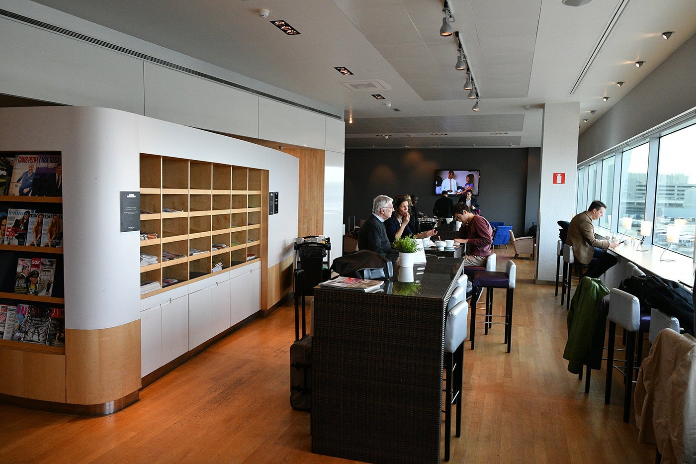 The Diamond was not exceptional by any stretch, but a huge improvement over a standard WOW experience. A friendly attendant let me in after I showed my Priority Pass card, and inside I found tired upholstery on the chairs and a scuffed, stained hardwood floor. But there was ample room to sit, a decent buffet and big windows overlooking the tarmac.