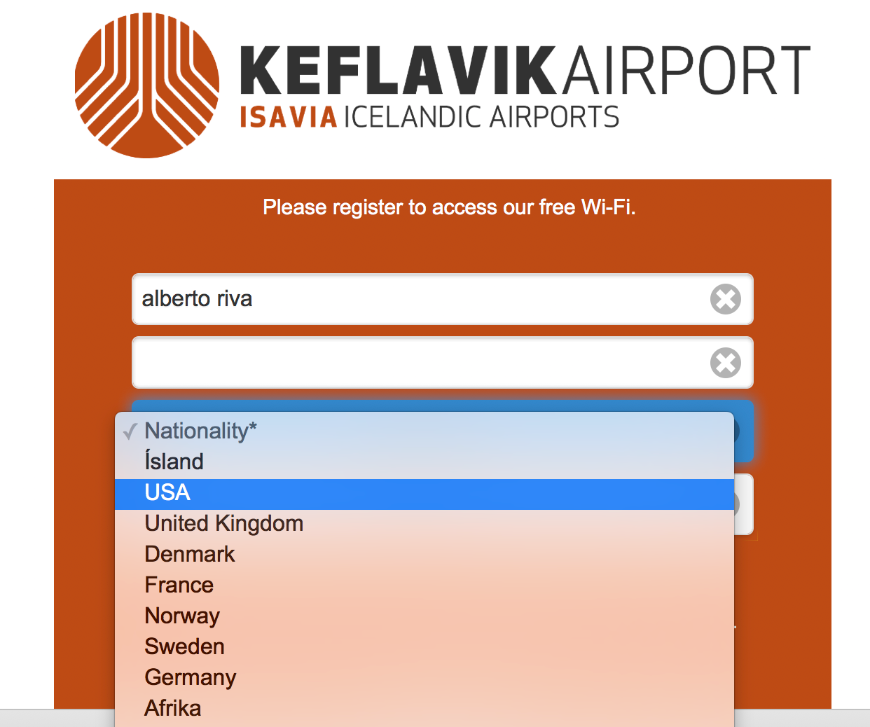 The public Wi-Fi was free and fast, but I did wonder what they were thinking when they listed "Africa" as a nationality on the initial screen.