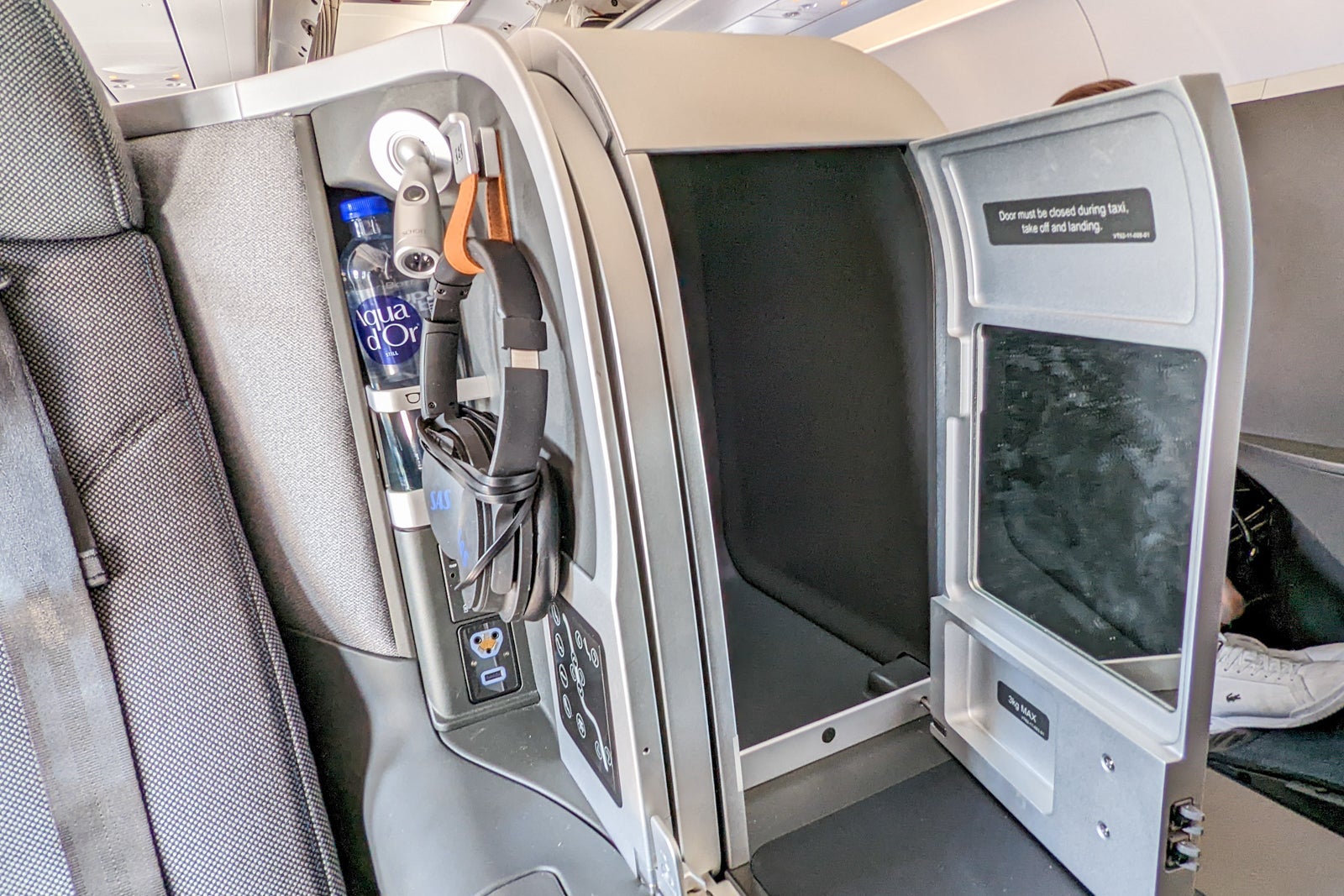 In the even-numbered rows, with just one seat on each side of the cabin, there are what are informally known as "throne" seats. These are substantially better than the paired seats in front and behind, with plenty of storage, decent privacy, no seat neighbor and direct aisle access.
