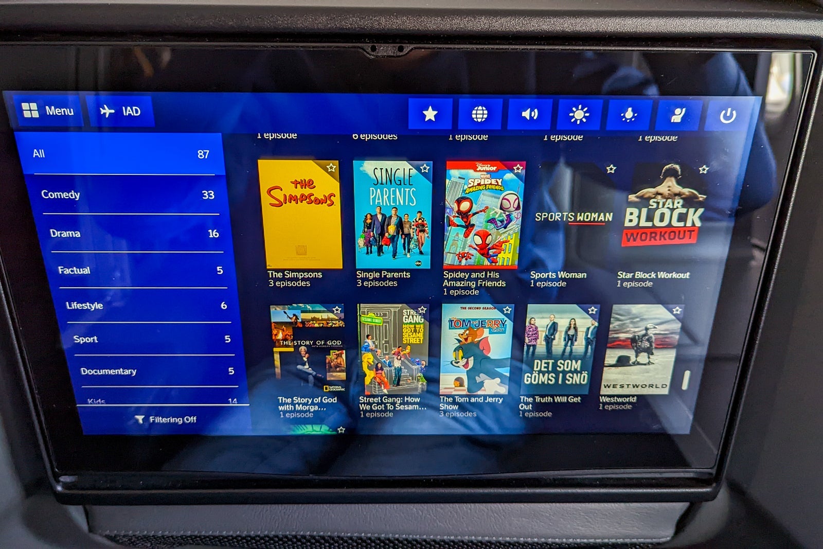 The SAS-branded noise-canceling headphones were good quality and there was also a bottle of water waiting for me at my seat when I boarded. There was a crisp new 16-inch touchscreen with a choice of 57 movies or 87 television shows.
