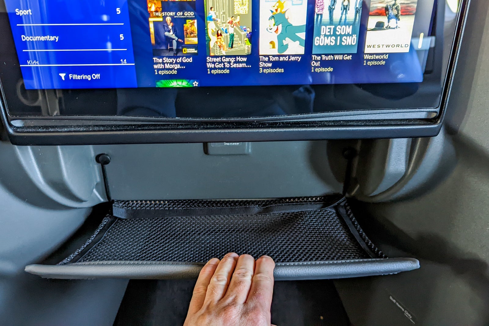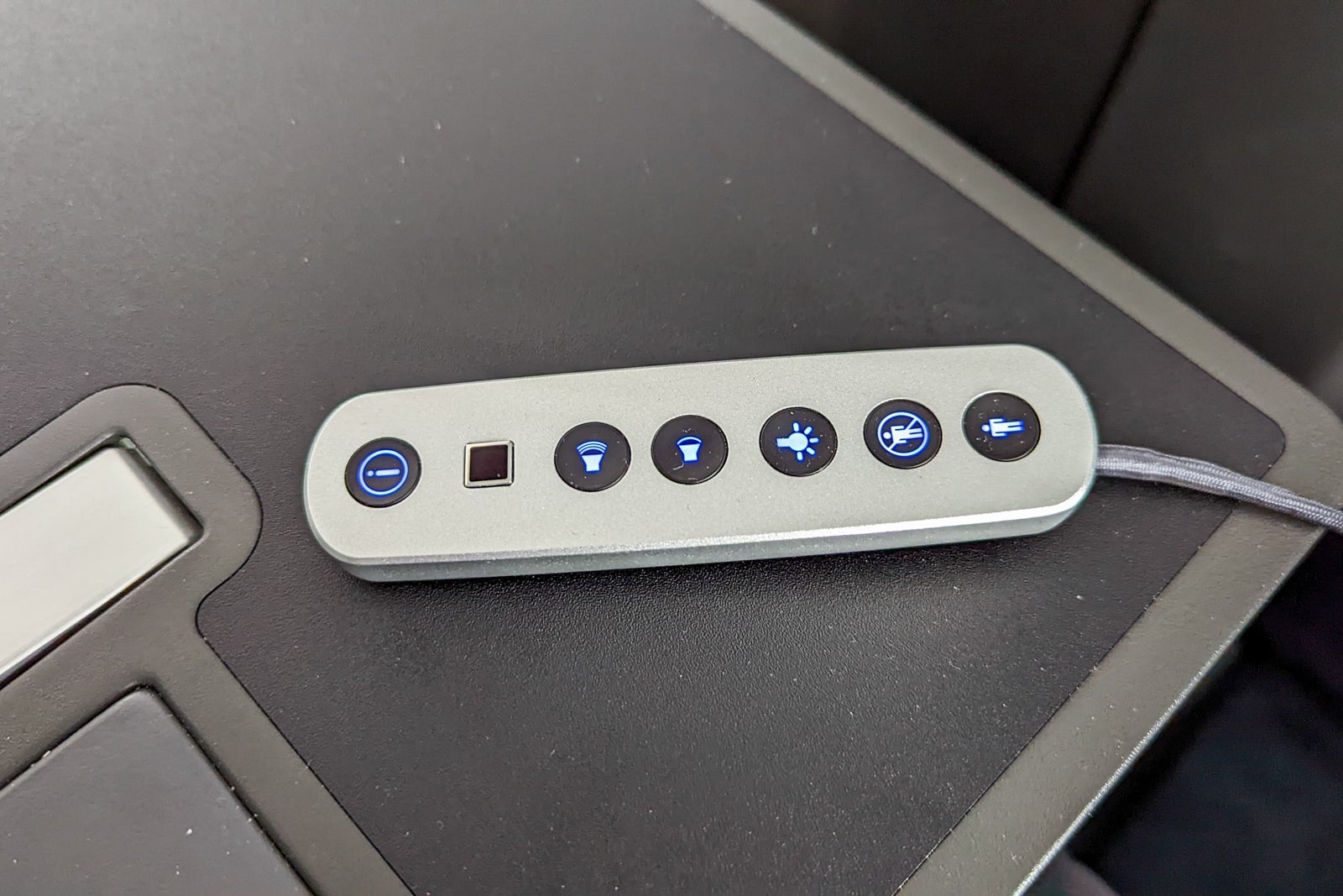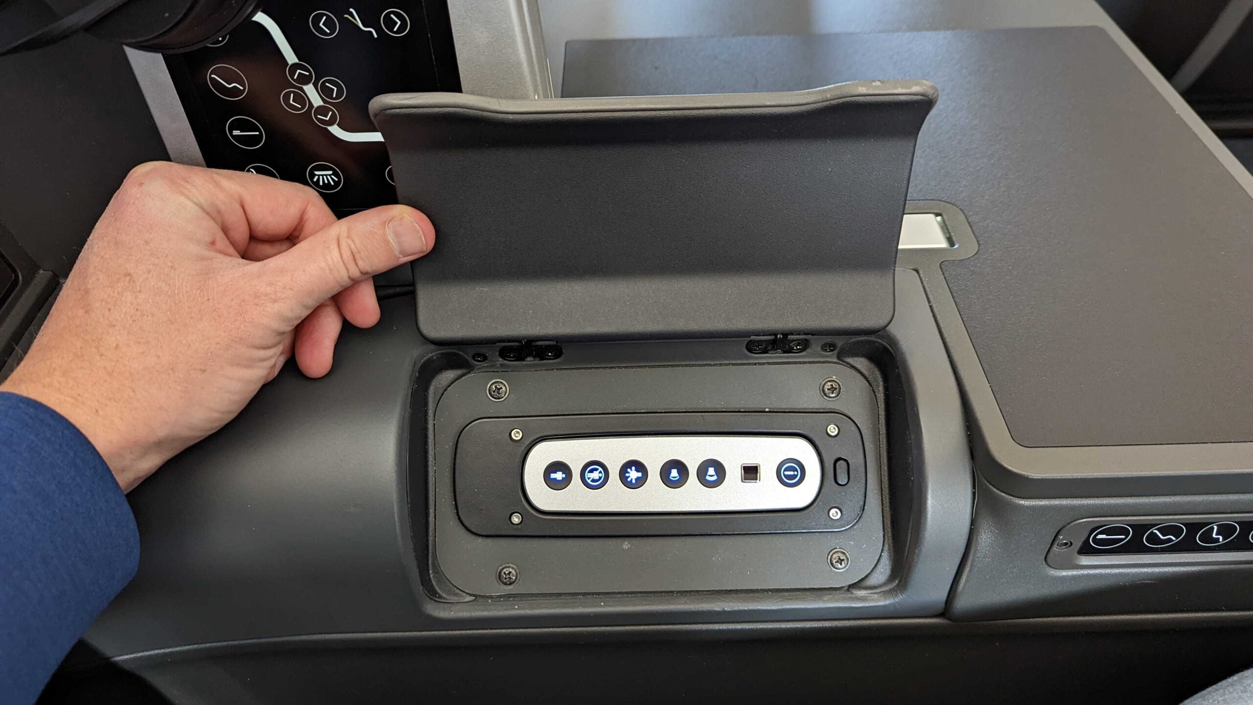 The screen and some seat features could also be controlled with a remote hidden in a small compartment next to the seat controls, but there were so many storage compartments at my seat I didn't find the remote until the end of the flight.