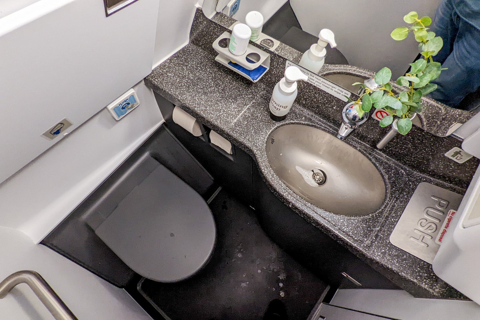 There was a single bathroom at the front of the plane for the business-class cabin which was a very tight squeeze, but with only 22 seats in the cabin, and a few empty, there was never much of a wait.