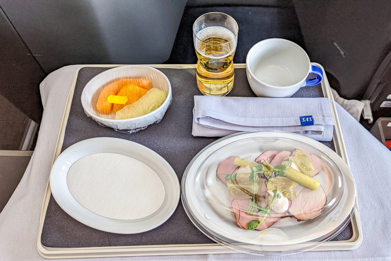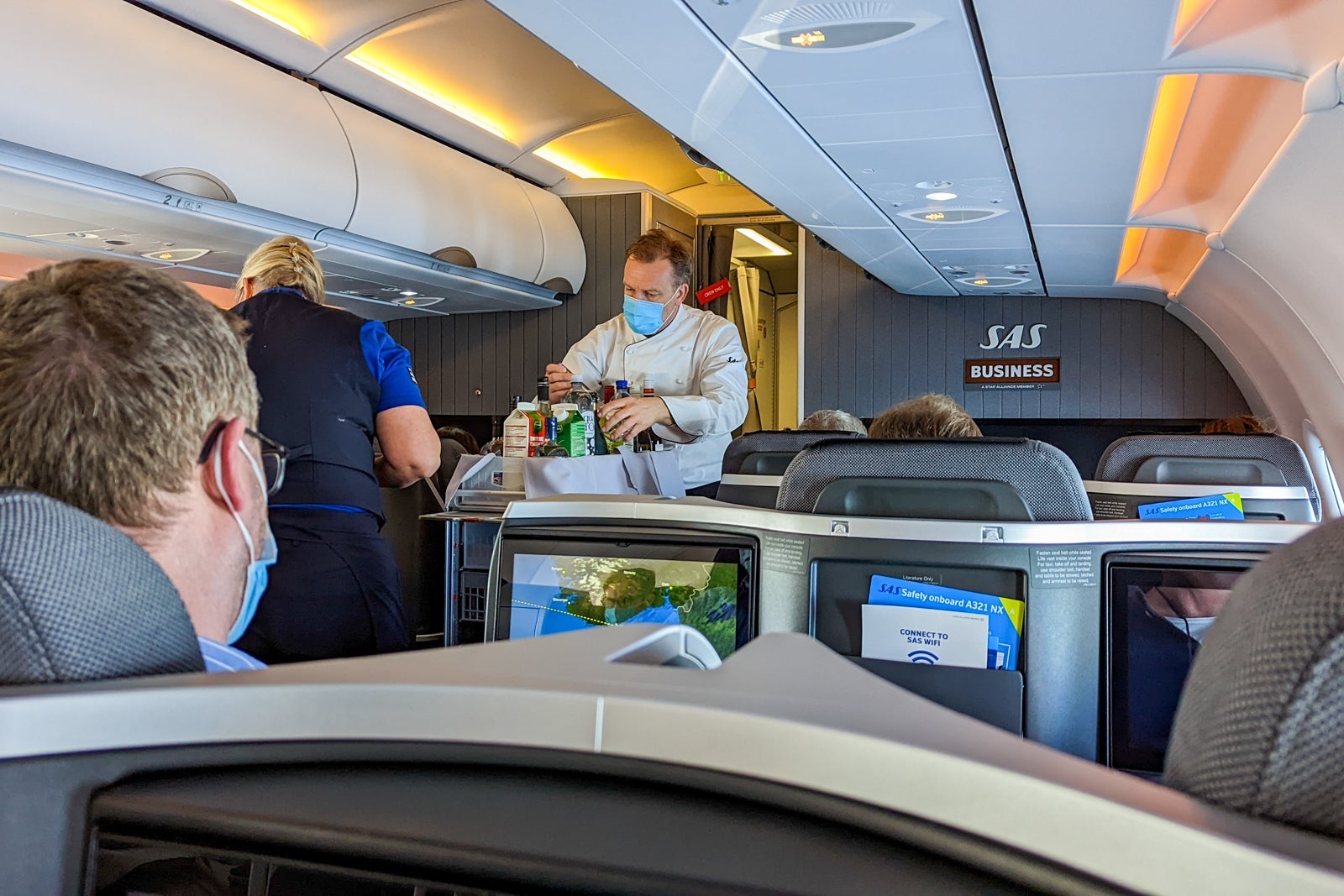 With only 22 seats in the cabin and a long flight ahead of us, this service could surely have been done from the galley for a more premium-seeming a la carte offering. A crew member revealed to me that SAS traditionally served business-class meals from the galley (like in a restaurant), but this was canceled during the pandemic and has not yet resumed.