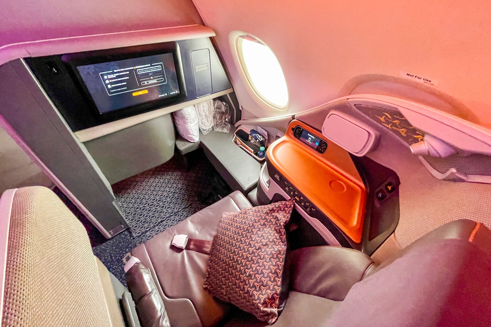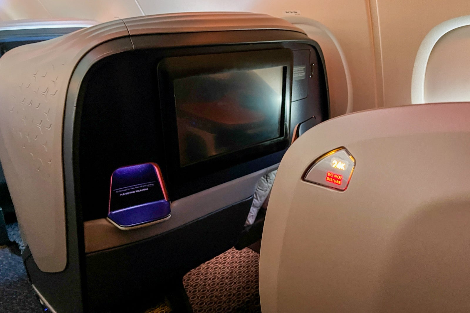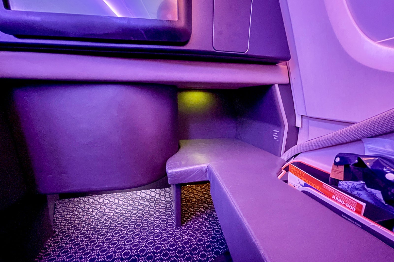 The footwell was located at an angle and was on the smaller side, but I still slept comfortably. That said, taller passengers might prefer center seats in the bulkhead row as those have much larger footrests.