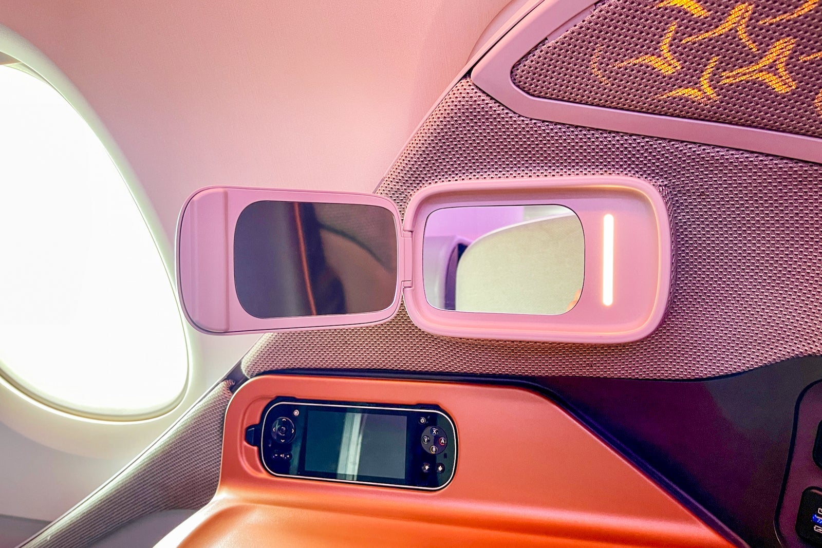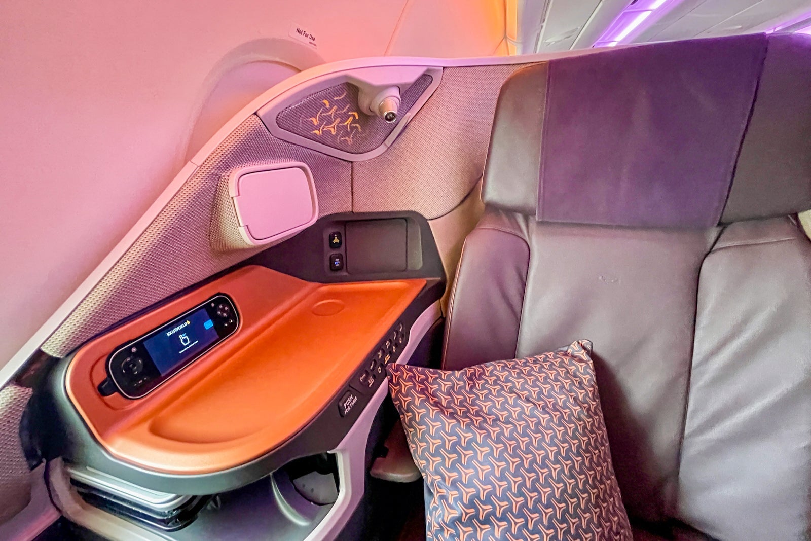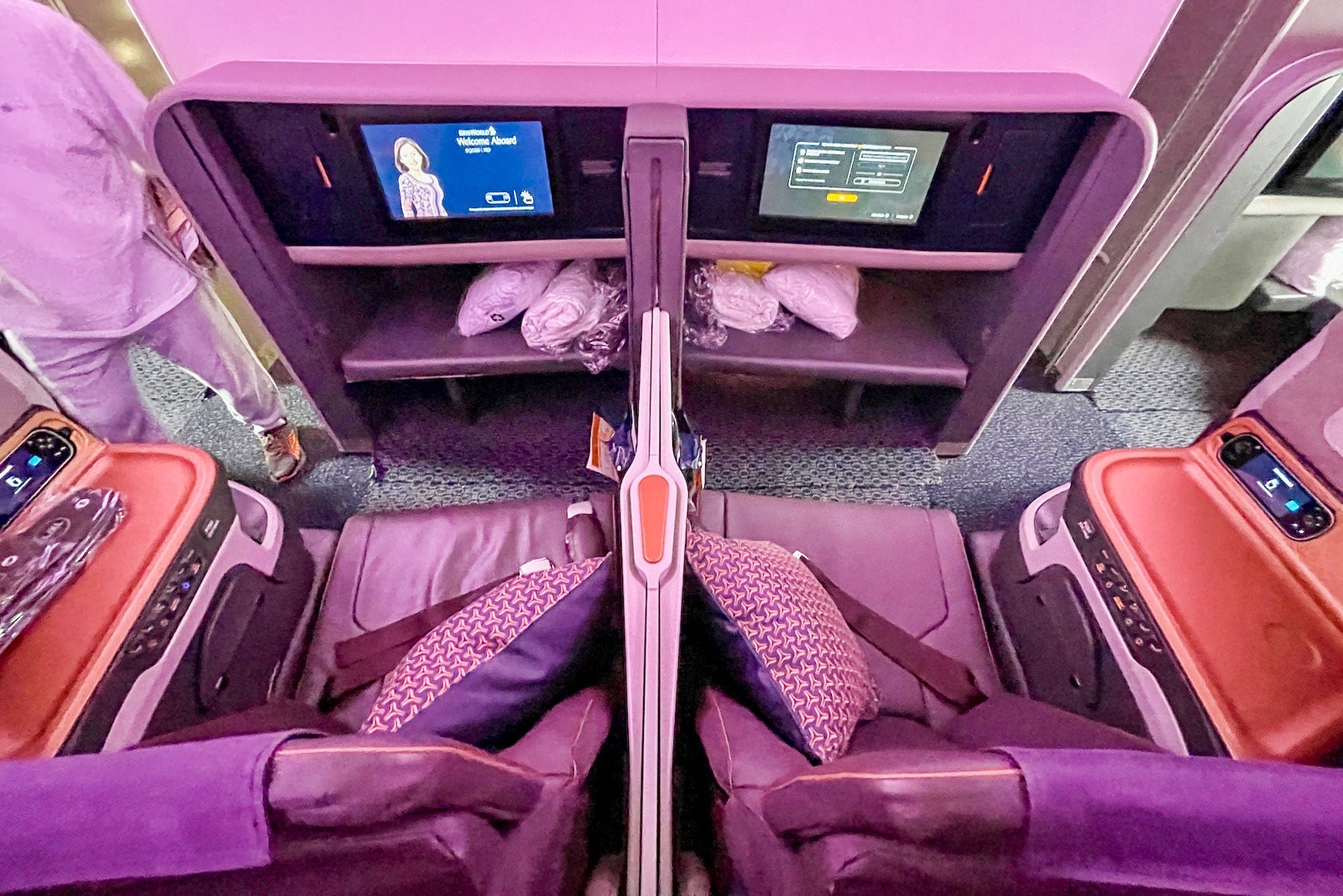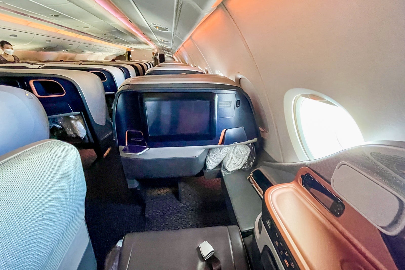 The footwell was located at an angle and was on the smaller side, but I still slept comfortably. That said, taller passengers might prefer center seats in the bulkhead row as those have much larger footrests.