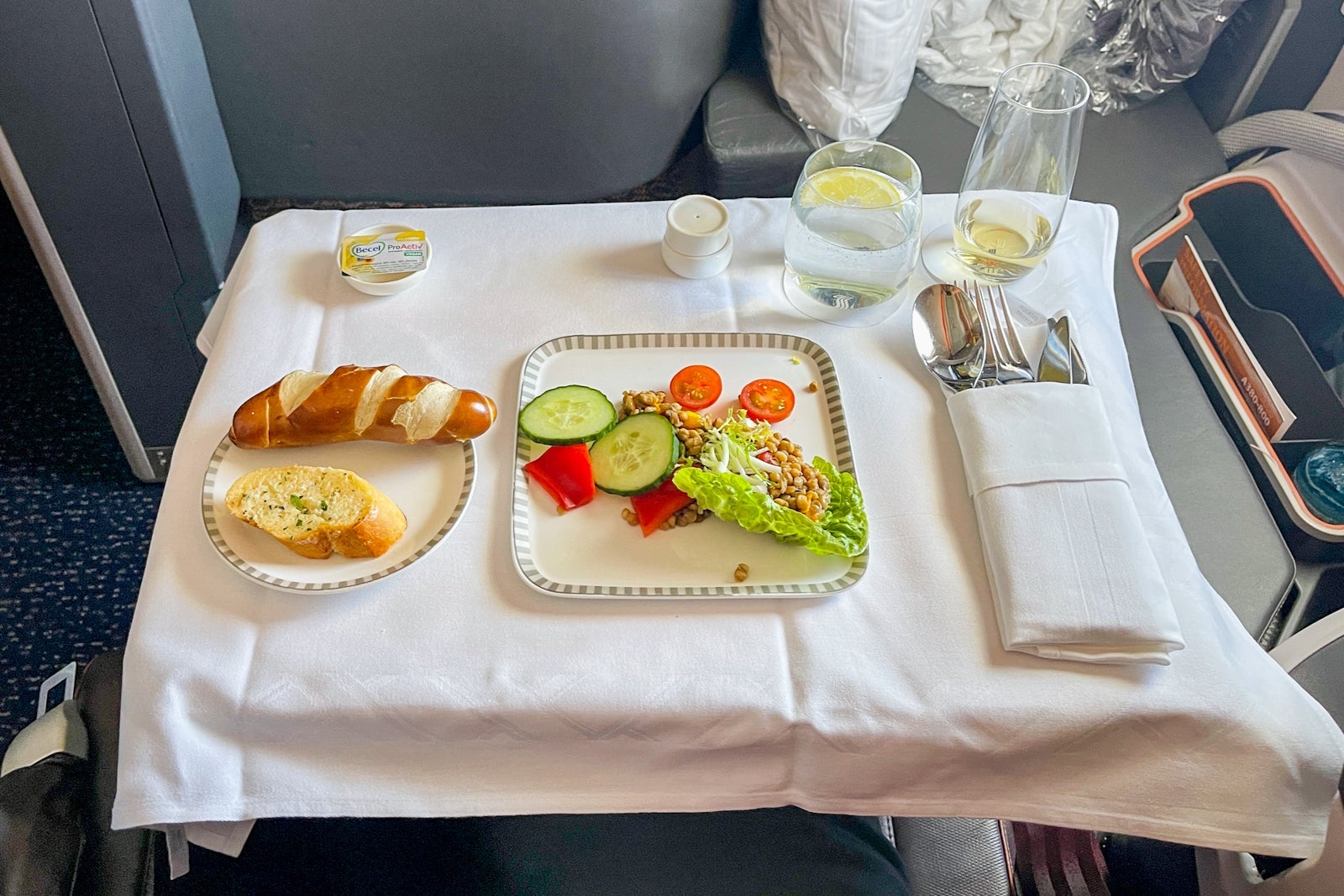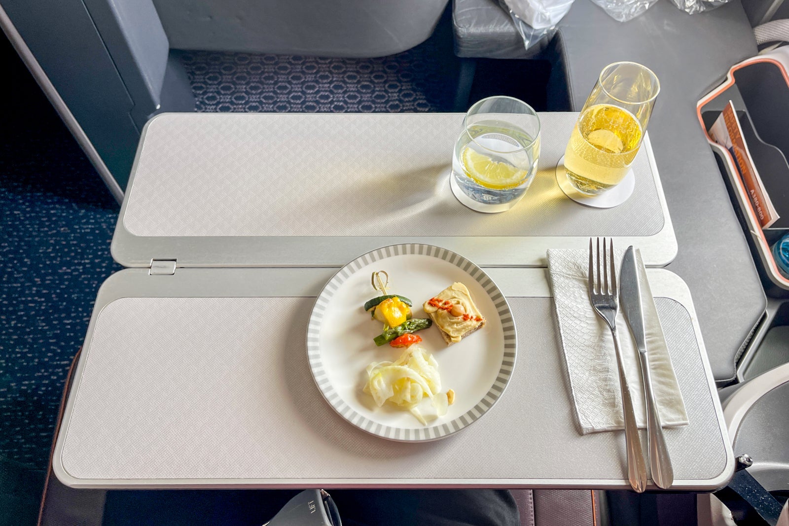 Despite the morning departure time, lunch was served on this flight. Due to COVID-19, there were no printed menus, but rather digital menus accessible via a QR code. Meal orders were taken while on the ground, but there were no pre-departure beverages offered.