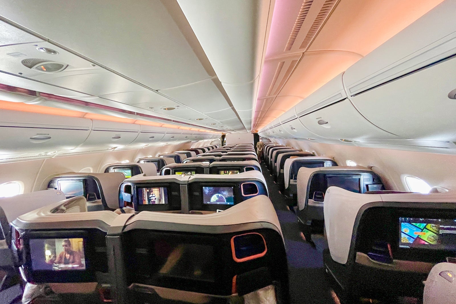 We booked this flight with cash, paying $1,875 for one-way in business class and a return trip in premium economy at a later date. This ended up being cheaper than simply booking a one-way, business-class ticket.