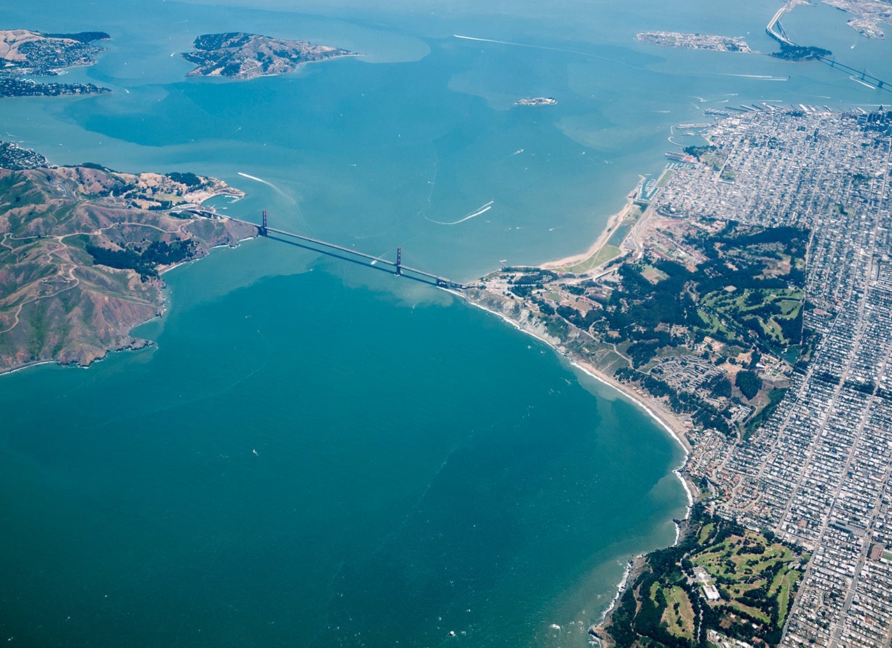 From here, we coast out over the sea slightly, making a slight left turn and flying parallel to the Golden Gate Bridge at around 12,000 feet. Not only does this give great views of the bridge, but it also enables you to spot Alcatraz, downtown San Francisco and the numerous piers jutting out into the bay.