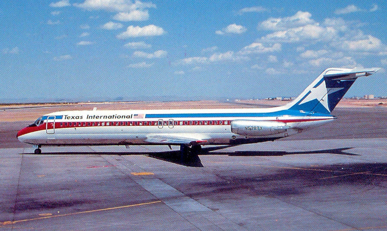 Formerly known as Trans-Texas Airways, this airline flew from 1944 until 1982. Our friend Frank Lorenzo bought the company in 1972, and this is where his holding company, Texas Air Corporation, got its name. Though it never flew anything bigger than a DC-9,Texas International went on to serve 48 cities in the U.S. and Mexico, primarily out of Houston and Dallas. Its frequent-flyer program, unveiled in 1979, was the industry's first. Lorenzo used Texas Air to buy Continental in '82, and folded the two together.