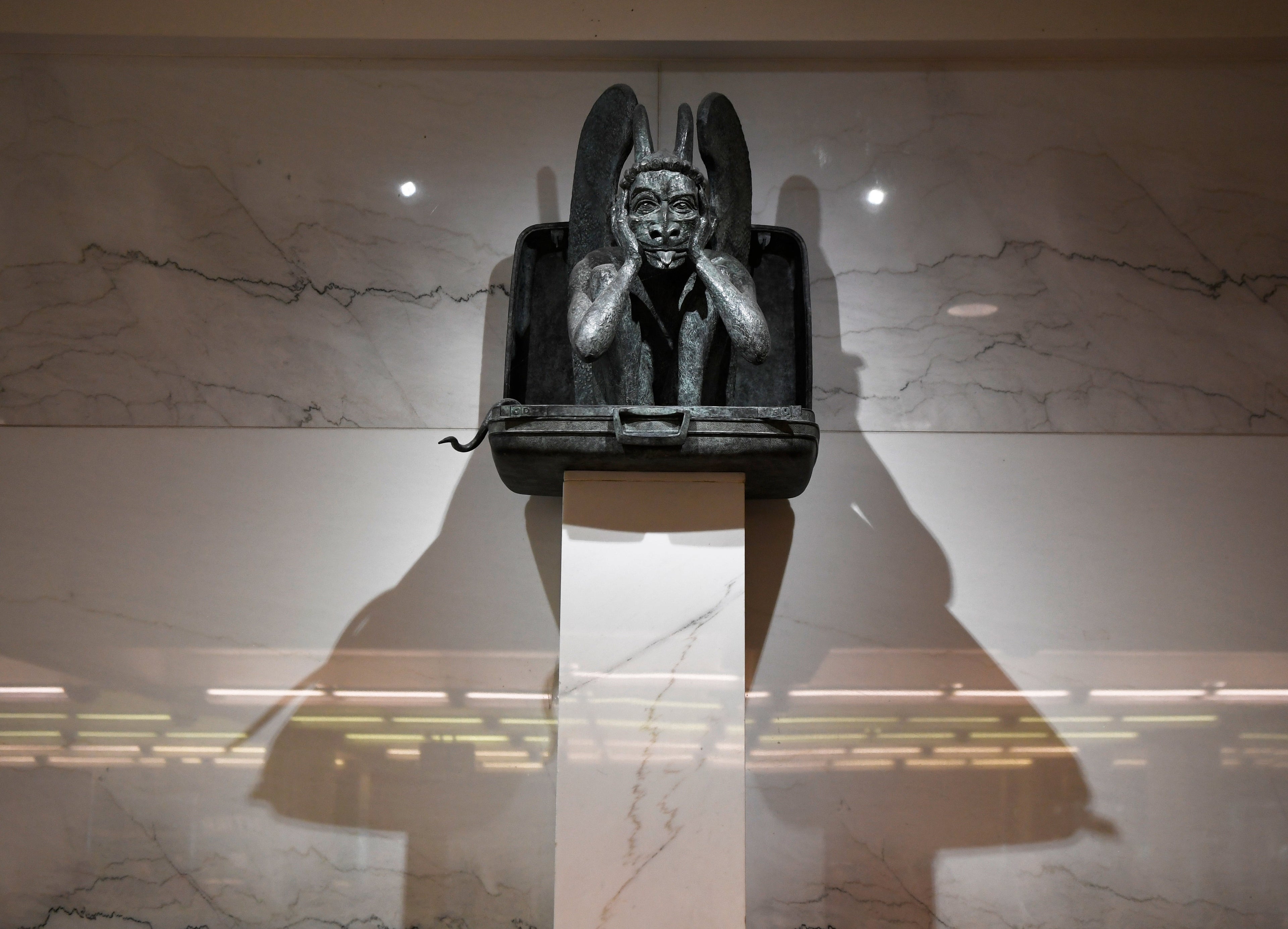 In any case, it doesn't take a conspiracy theorist to be weirded out by the gargoyles that watch over travelers collecting bags at baggage claim.