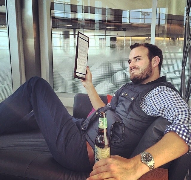 Killing time is a joy at the Dallas Centurion lounge. TPG enoying a micro brew after his spa treatment last December