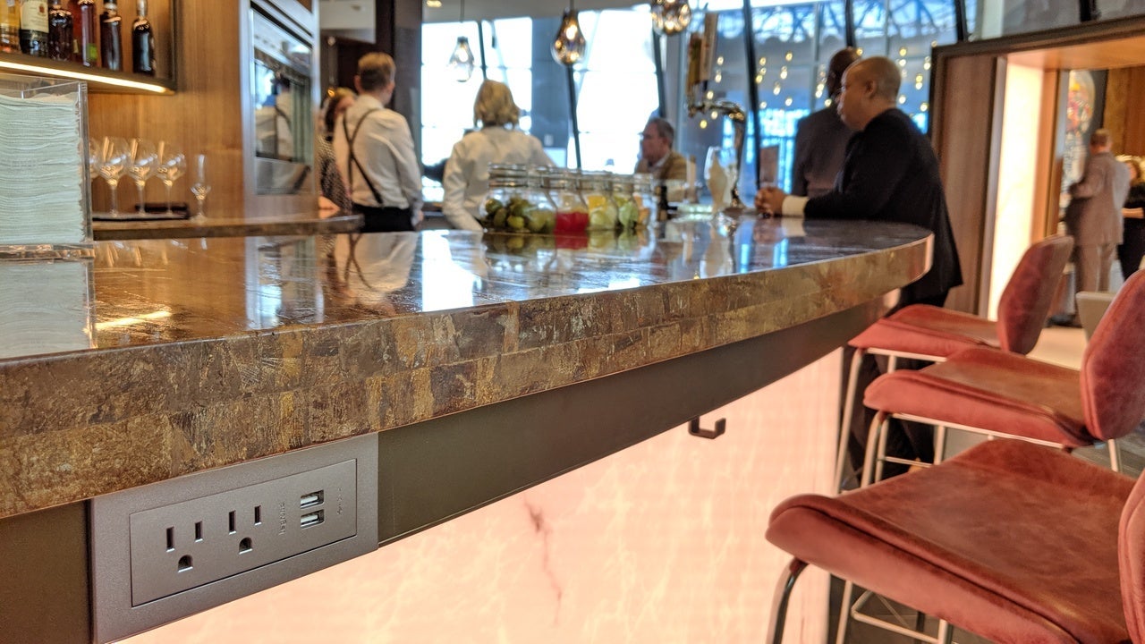 You'll find high-speed Wi-Fi throughout the lounge and power outlets everywhere.
