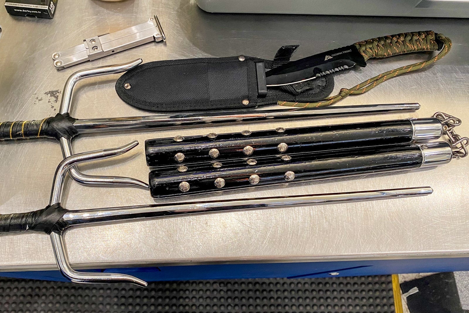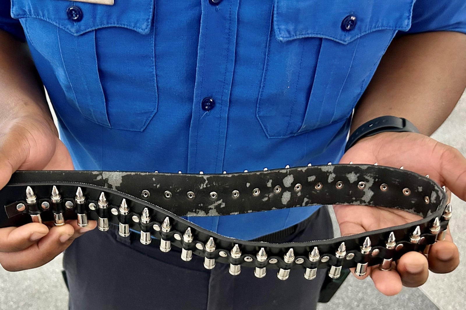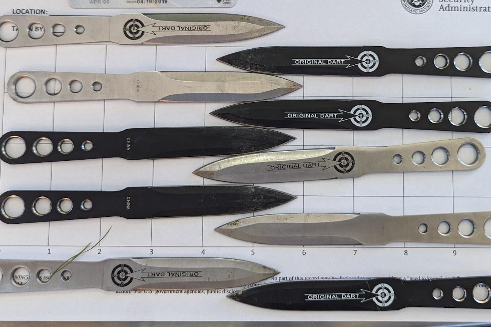 Some examples include a knife in the shape of a gun at LaGuardia Airport (LGA), a cleaver and Batarang at Buffalo Niagara International Airport (BUF), a knife in a belt buckle at Ronald Reagan Washington National Airport (DCA), a push knife at Trenton-Mercer Airport (TTN), throwing knives at Frederick Douglass Greater Rochester International Airport (ROC), a machete at Newark Liberty International Airport (EWR), and key knives at Lehigh Valley International Airport (ABE).