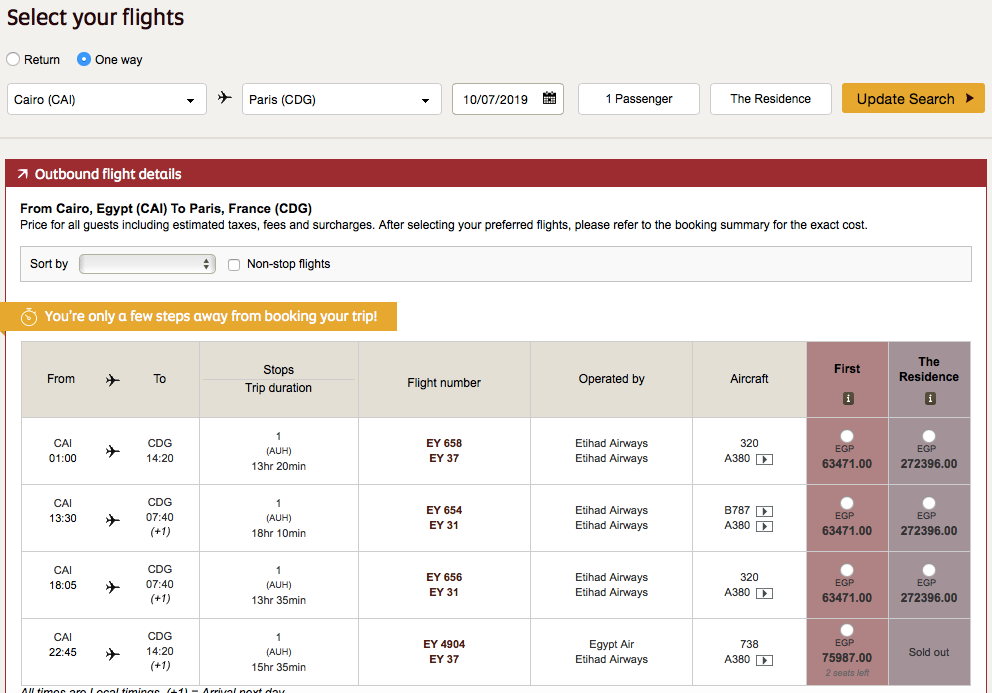 Or from Cairo (CAI) to Paris (CDG) for 272,396 Egyptian Pounds ($15,189) each way.