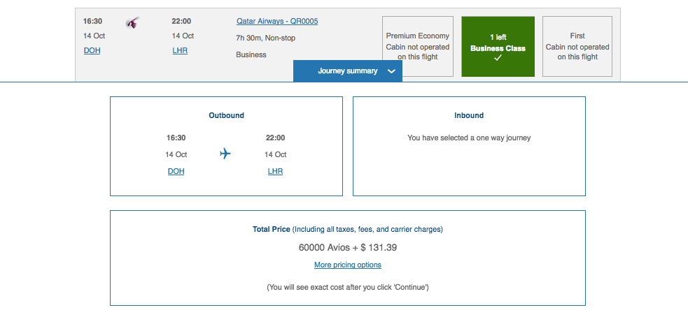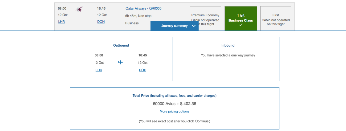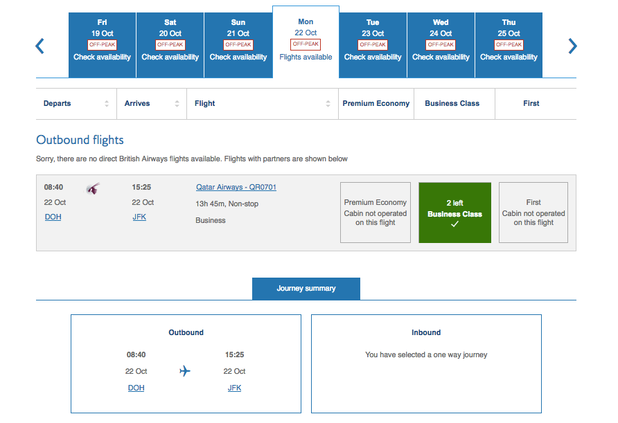 So as not to end on a down note, though award space can be scarce, it is still available — even on premier routes like between Doha and New York and Doha and London. Here are a few sample awards I found to whet your appetite.