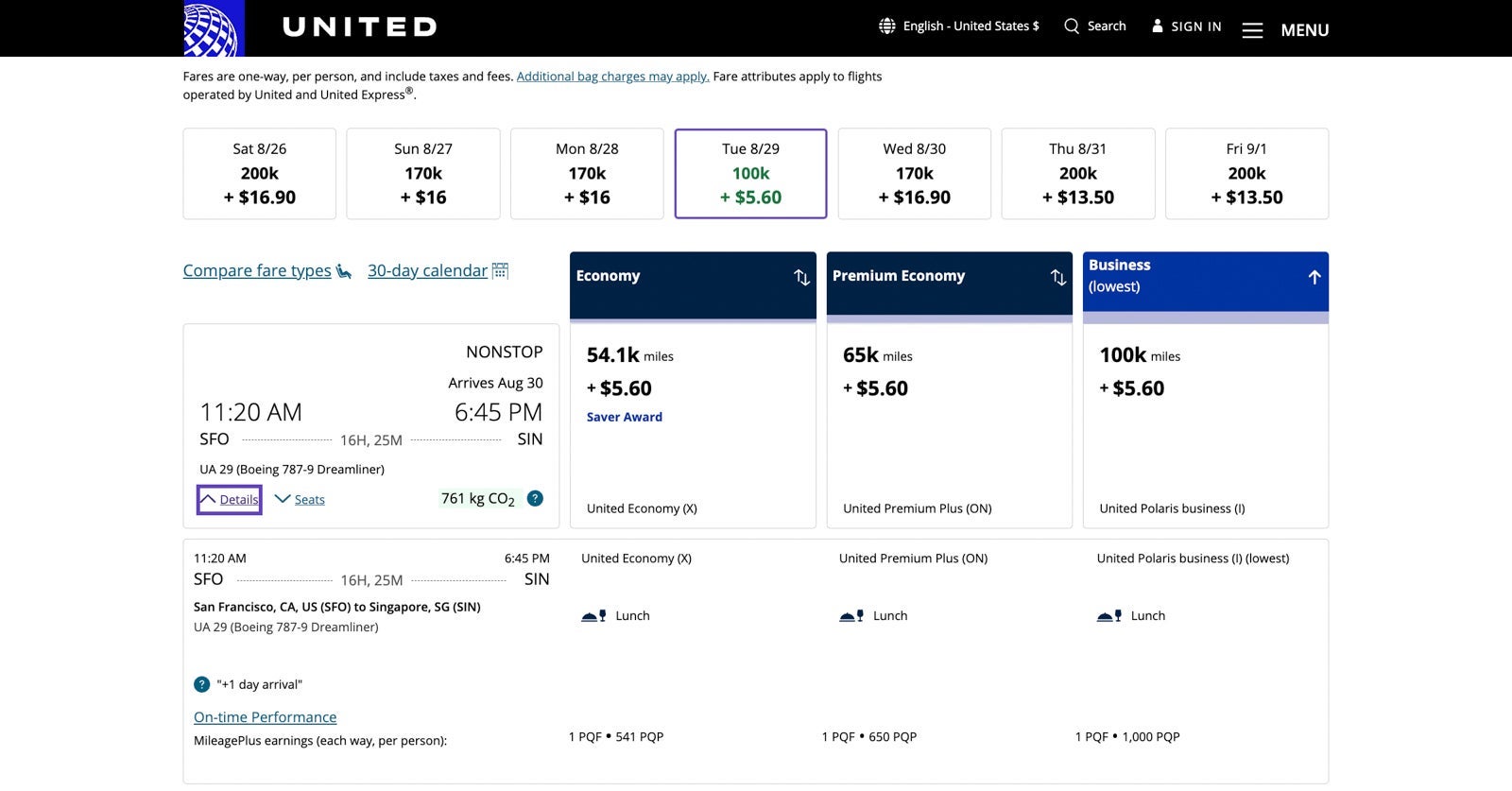 Case in point: For my recent one-way flight from San Francisco to Singapore, United MileagePlus would have required 100,000 miles plus $5.60 in taxes and fees.
