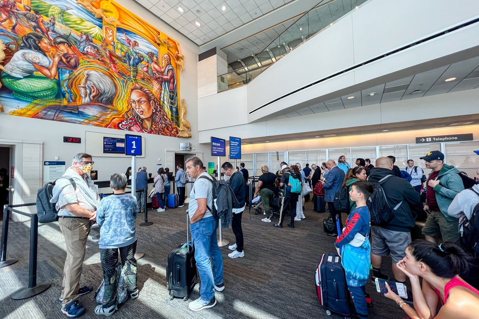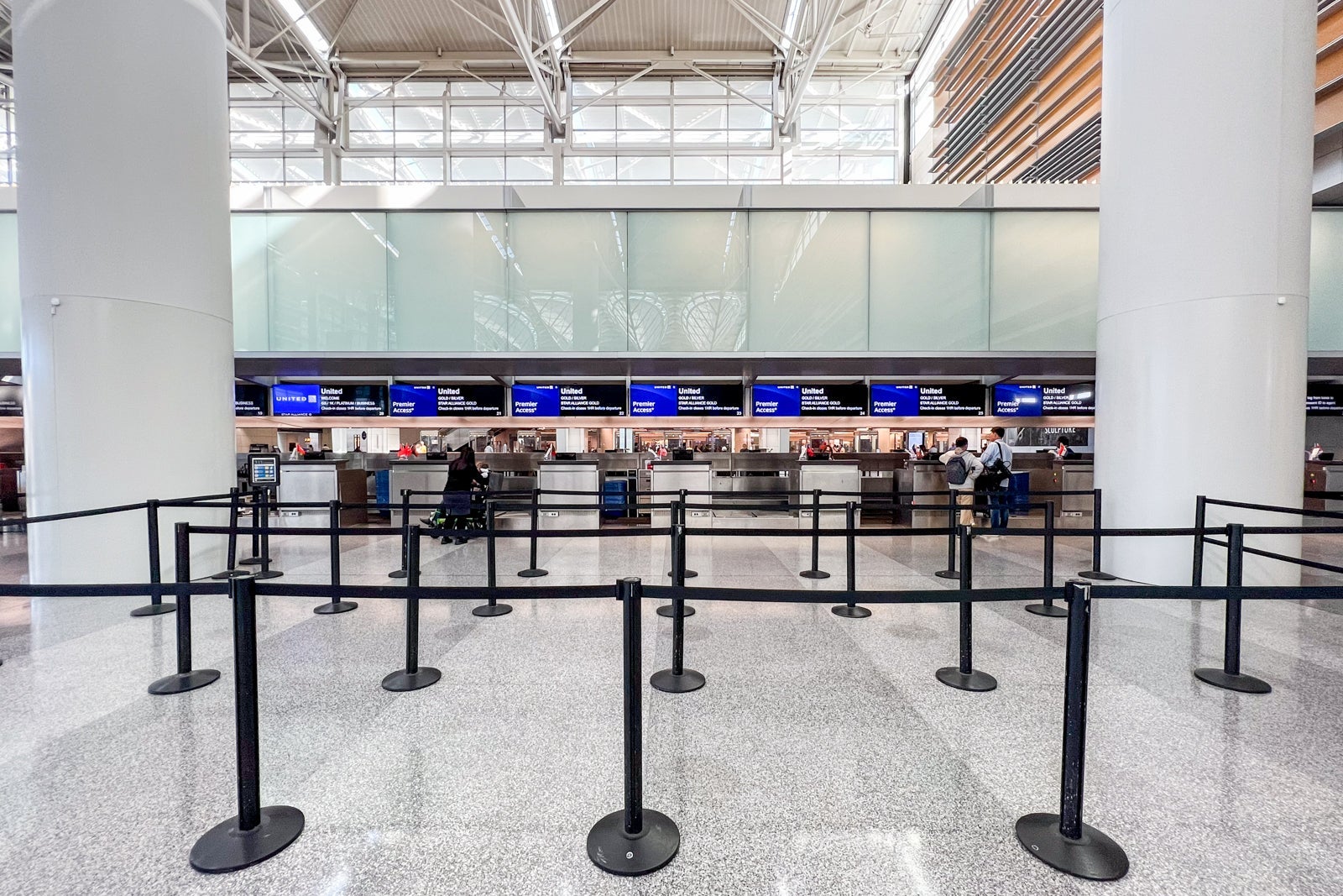 I arrived at the airport at around 9 a.m. and found the international terminal fairly empty. Thanks to my business-class ticket, I could use a priority line reserved for Polaris passengers and United Premier 1K elite members for check-in, and since there was no one else waiting, I stepped right up to the counter and checked in in under two minutes.