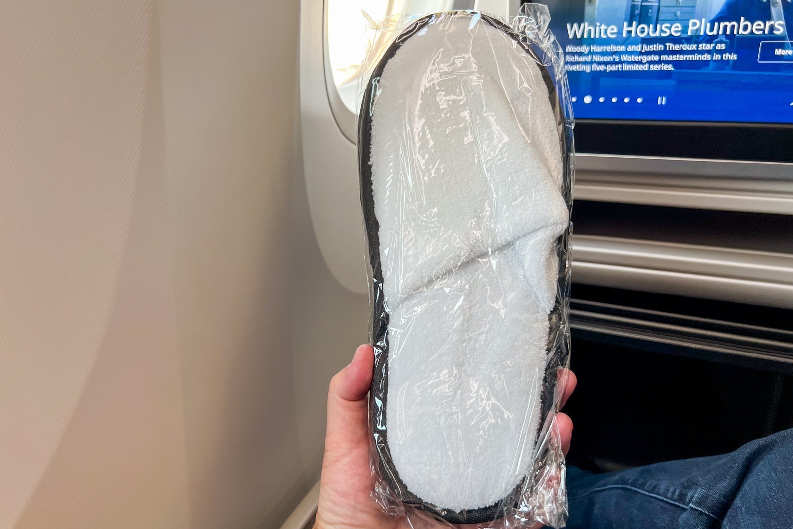 The eye mask came in especially handy because Boeing Dreamliners don't have physical window shades. Instead, they have digital shades, and while the crew kept the cabin completely dimmed, if you are light-sensitive, you might still have trouble sleeping.